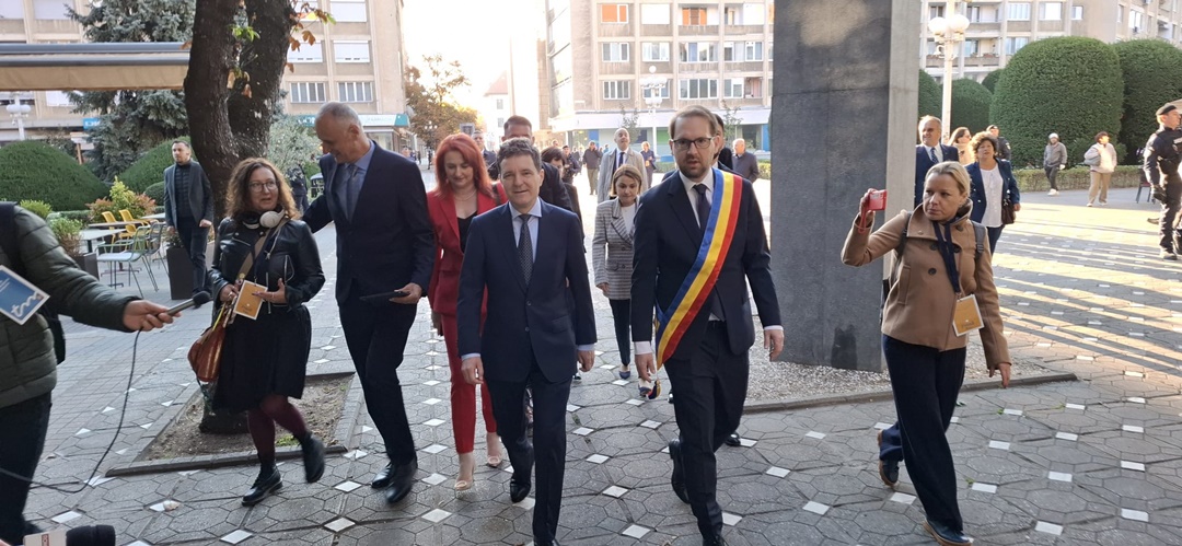 La orele prânzului, președintele României, Nicușor Dan a mers la Palatul Administrativ unde s-a întâlnit cu președintele Consiliului Județean Timiș, Alfred Simonis.