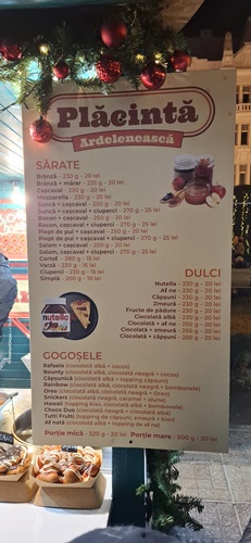 Si daca doriti si un desert, puteti incerca placinte. Pretul celor sarate pleaca de la 10 lei, iar cele dulci costa 20 de lei si au disferite umpluturi, in timp ce gogosile se vand la portie. Cea mica este 20 de lei, iar cea mare 30. Colacul traditional secuiesc, cu diferite sortimente, se vinde cu 25 de lei bucata