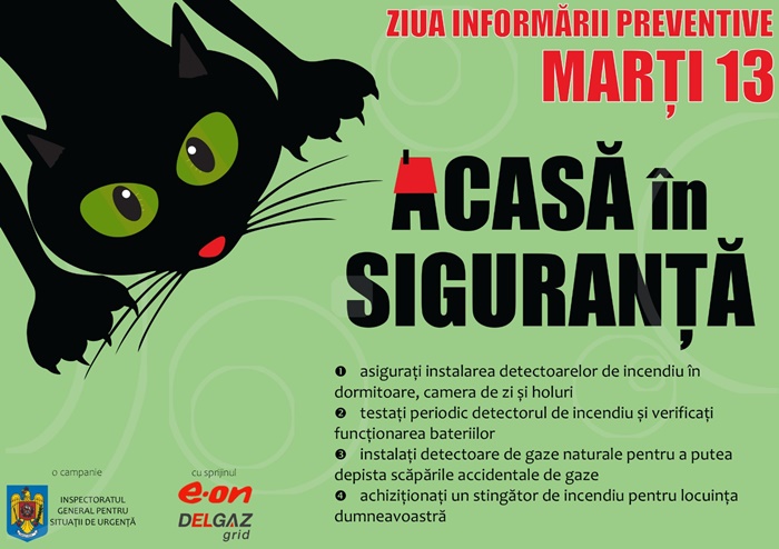 Sub sloganul Acasa in siguranta astazi sarbatorim Ziua Informarii Preventive – MARTI 13, dar si Ziua Internationala a Reducerii Riscurilor la Dezastre.