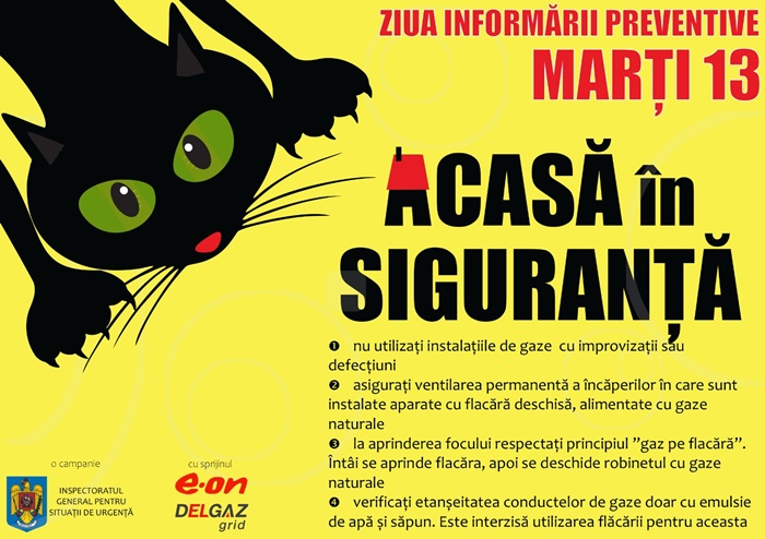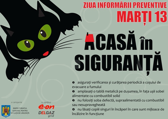 Pornind de la aceste considerente, incepând cu anul 2011, Inspectoratul General pentru Situatii de Urgenta a demarat campania Ziua Informarii Preventive – MARTI 13“, transmit reprezentantii ISU Timis.