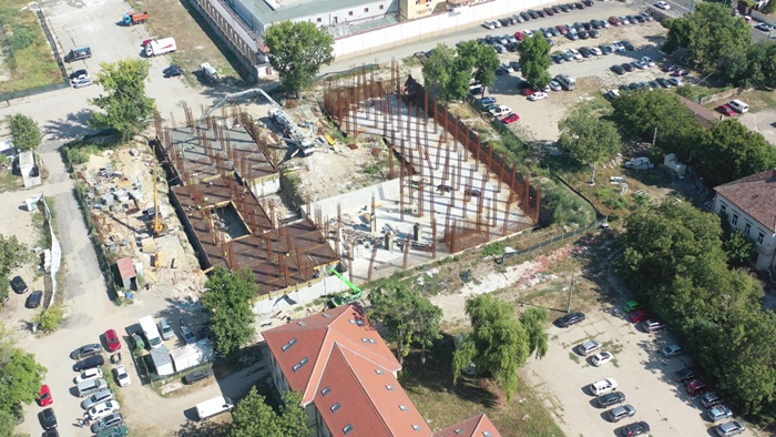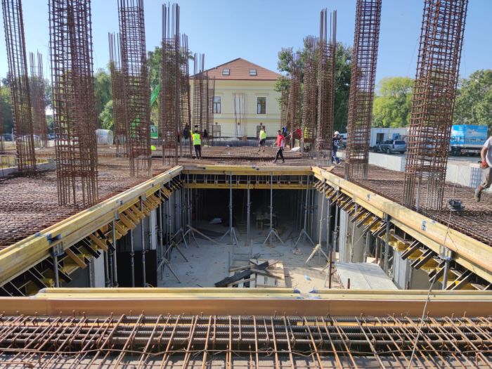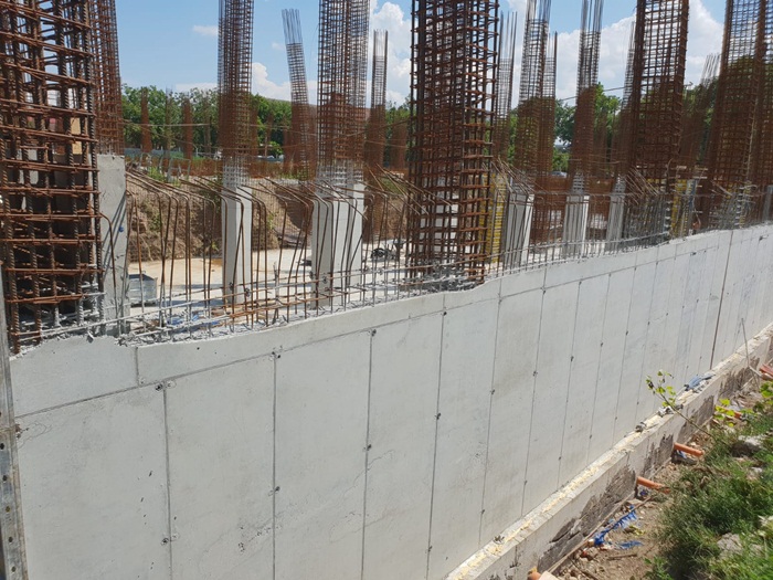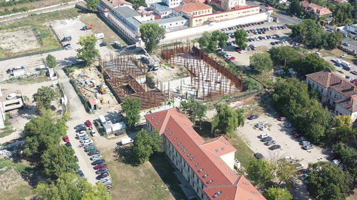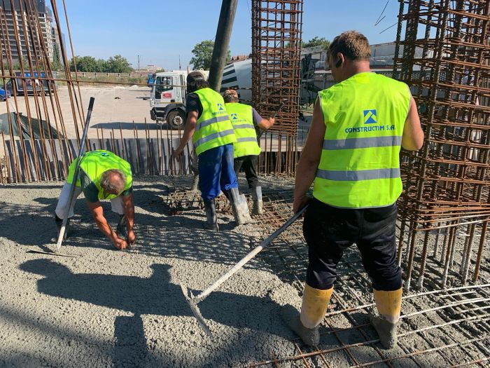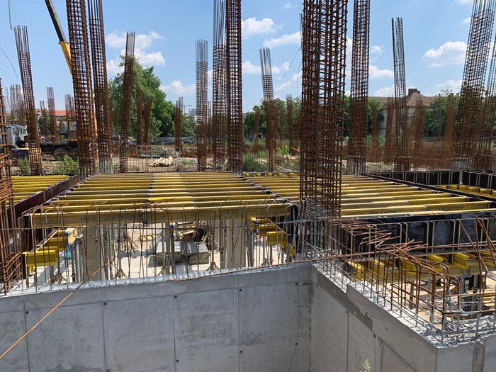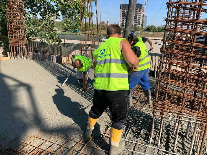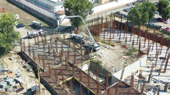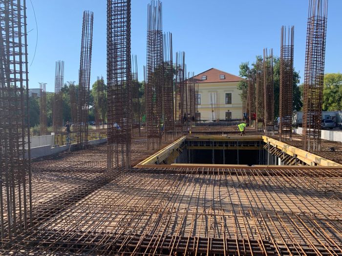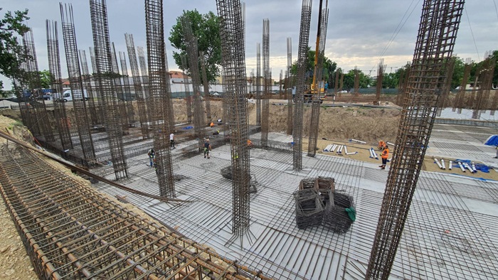 “Am inceput turnarea placii pe o suprafata de aproximativ 1000 de mp. Am optimizat solutia de proiectare pentru rezistenta, pentru ca sunt zidurile cetatii pe care le vor pastra, le vom face vizibile. A fost turnat radierul dintr-o singura bucata, aproximativ 2300 mp. Am continuat cu corpul A, cu stalpii, si am finalizat tot ceea ce inseamna cofrare si armare pentru turnarea placii. Intr-o luna cred ca ar trebui sa finalizam aceste proceduri si la corpurile B si D.