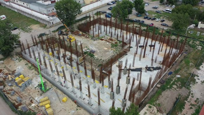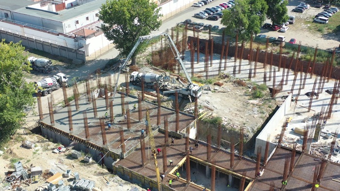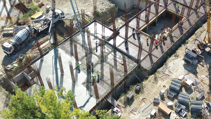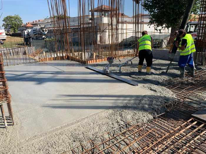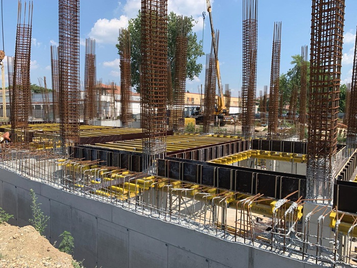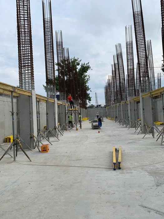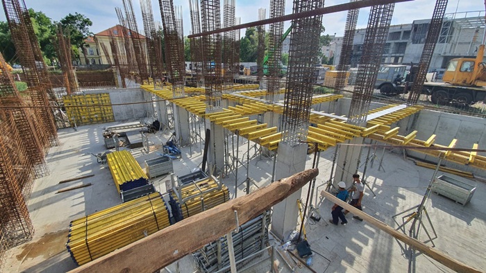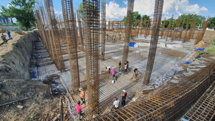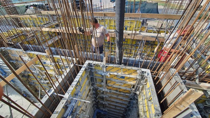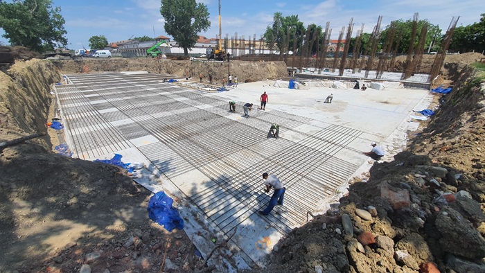“Am inceput turnarea placii pe o suprafata de aproximativ 1000 de mp. Am optimizat solutia de proiectare pentru rezistenta, pentru ca sunt zidurile cetatii pe care le vor pastra, le vom face vizibile. A fost turnat radierul dintr-o singura bucata, aproximativ 2300 mp. Am continuat cu corpul A, cu stalpii, si am finalizat tot ceea ce inseamna cofrare si armare pentru turnarea placii. Intr-o luna cred ca ar trebui sa finalizam aceste proceduri si la corpurile B si D.