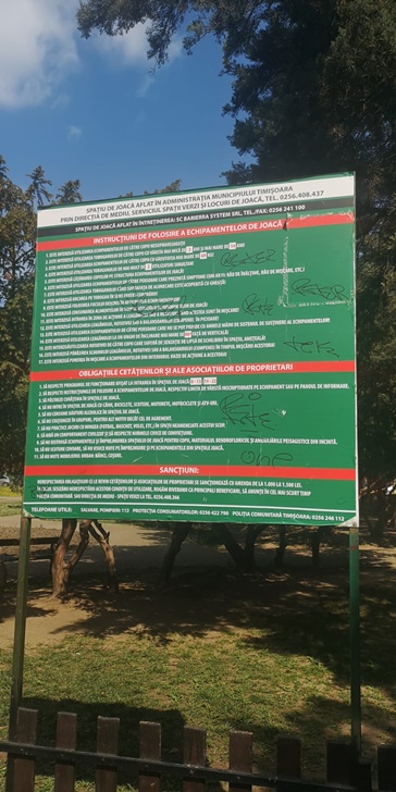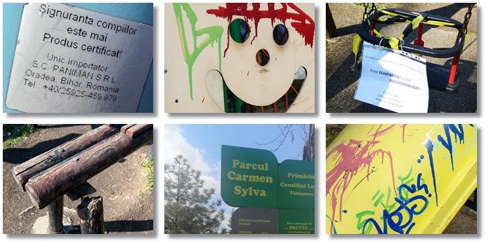 “Au fost verificate 6 locuri de joaca din parcuri, toate aflate administrarea Primariei Timisoara s-au indisponibilizat echipamente deteriorate, fisurate, cu parti lipsa. S-au identificat locuri de joaca neimprejmuite: Parcul Chopin si partial neimprejmuit Parcul Copiilor. In Parcul Carmen Sylva pe panoul de informare nu era mentionat numarul autorizatiei“, transmite Alin Gubandru, comisar sef adjunct al CJPC Timis.