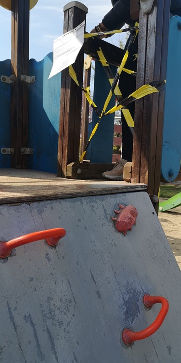 De asemenea, pana la remedierea problemelor, mai multe echipamente de joaca au fost indisponibilizate. Au fost puse benzi si afise prin care se interzice utilizarea lor de catre copii, pentru siguranta.