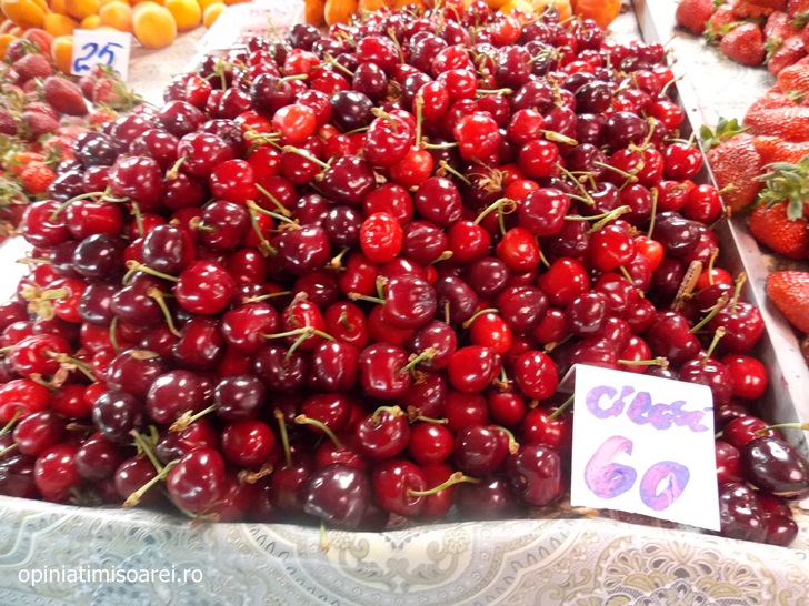Insa, pe pietele din Timisoara si-au facut loc si ciresele de import. Sunt mari, rosii, coapte si te ademenesc sa le gusti. Sunt aduse din Italia sau Grecia si costa 60 de lei kilogramul.