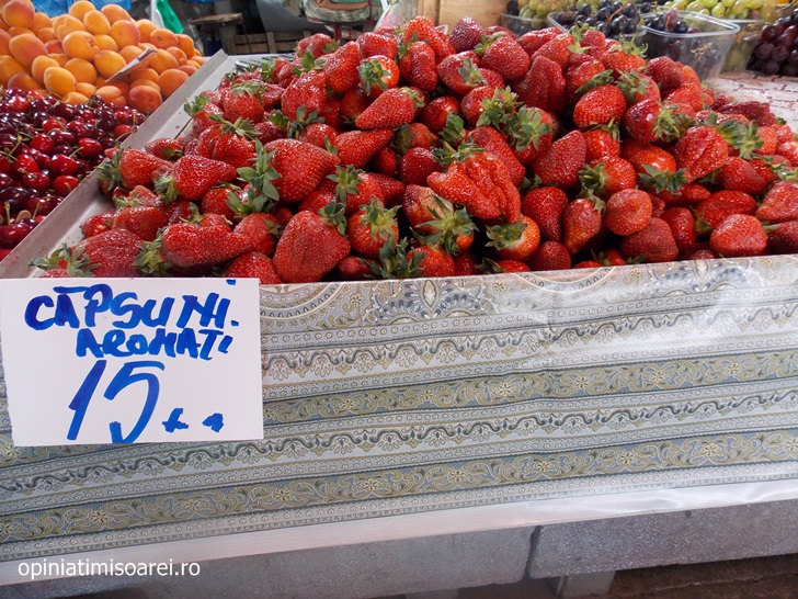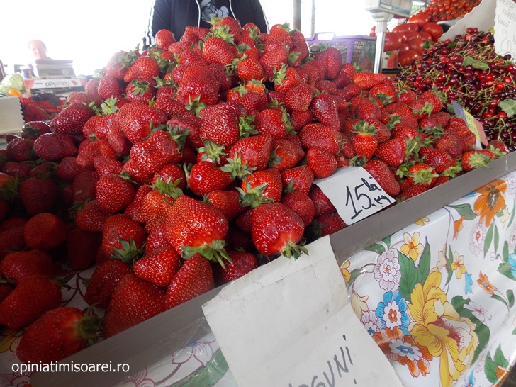 Pentru cumparatorii cu pofta de fructe, de pe tarabe ii imbie, pe langa cirese, si munti de capsuni. Sunt uriase si rosii, iar vanzatorii nu indraznesc sa sustina ca ar fi autohtone. Multe sunt de import, aduse din Turcia, si costa intre 12 si 15 lei kilogramul.