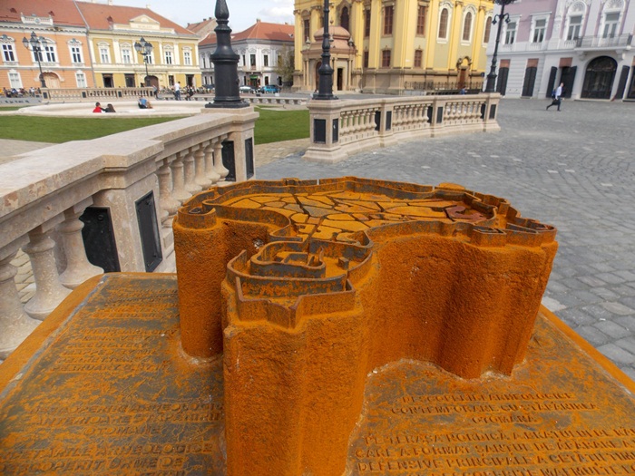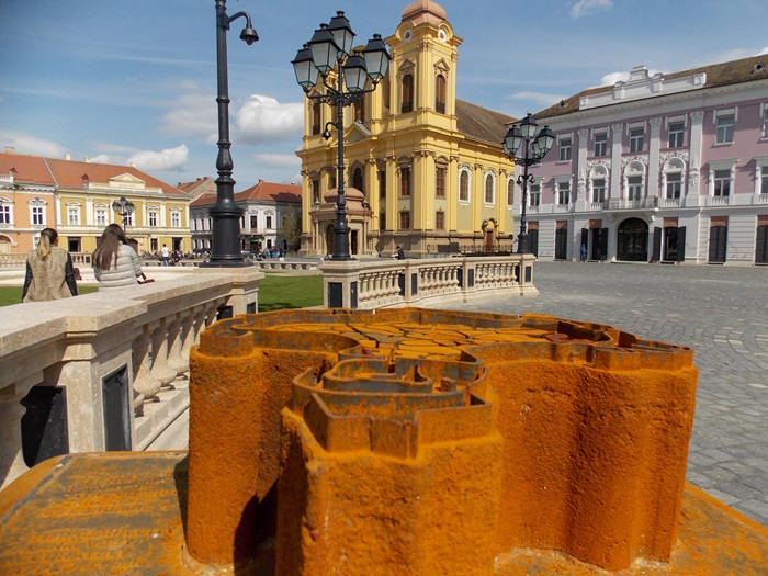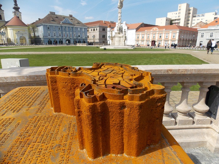 TIMISOARA. Piata Unirii din Timisoara s-a imbogatit cu un nou monument. Este vorba mai exact de o alta reprezentare a cetatii Timisoarei, facuta de data aceasta dupa ocuparea orasului de habsburgi.
