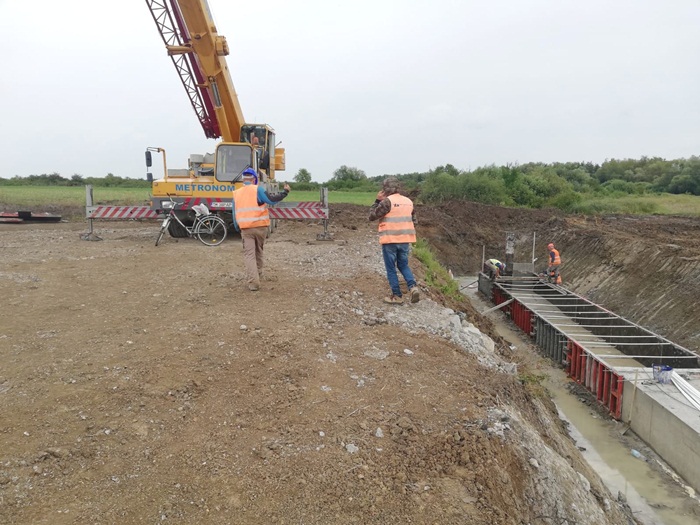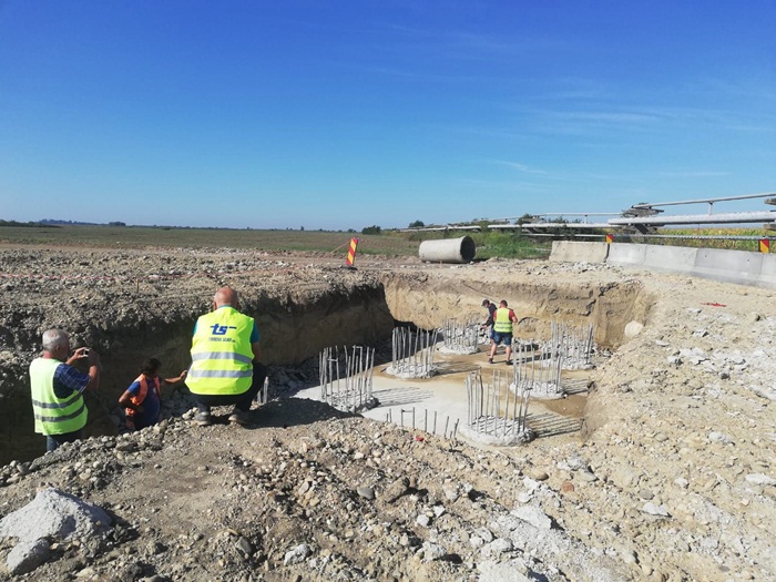 “In zona localitatii Utvin, s-au montat prefabricatele acestor podete, s-au executat nivelari ale stratului de forma din balast, pentru a fi adus la cota de drum si s-au facut alte umpluturi cu pamant. S-a realizat acelasi tip de umpluturi si de la DN 59 Timisoara – Moravita catre localitatea Chisoda, unde se incepe si decopertarea stratului vegetal. Tot la podete s-a lucrat si pe sectoarele Chisoda – Giroc si Mosnita Noua – Ghiroda (hidroizolatii, turnare si stabilizare fundatii etc.). Arheologii continua, in paralel, cercetarile la situl numarul 2, la km 20-21 (comuna Mosnita Noua)“, transmit reprezentantii Directiei Regionale de Drumuri si Poduri Timisoara.