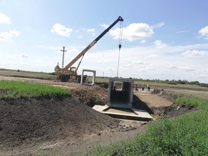 TIMISOARA. Saptamana plina pentru muncitorii de pe santierul Variantei de Ocolire Sud Timisoara. Antreprenorul a profitat de vremea perfecta pentru lucrari si se axeaza pe amenajarea podetelor de pe traseul soselei de centura.