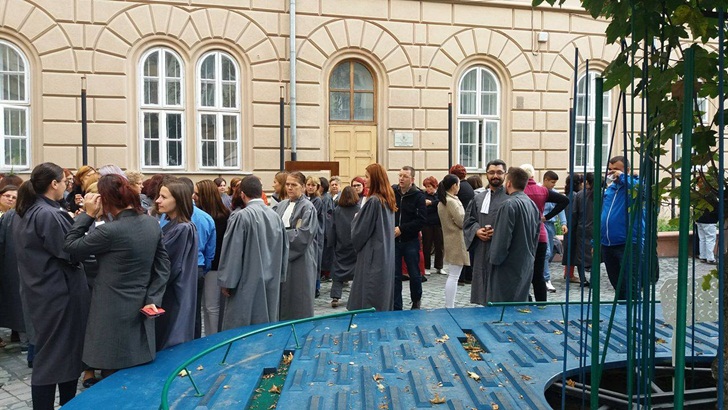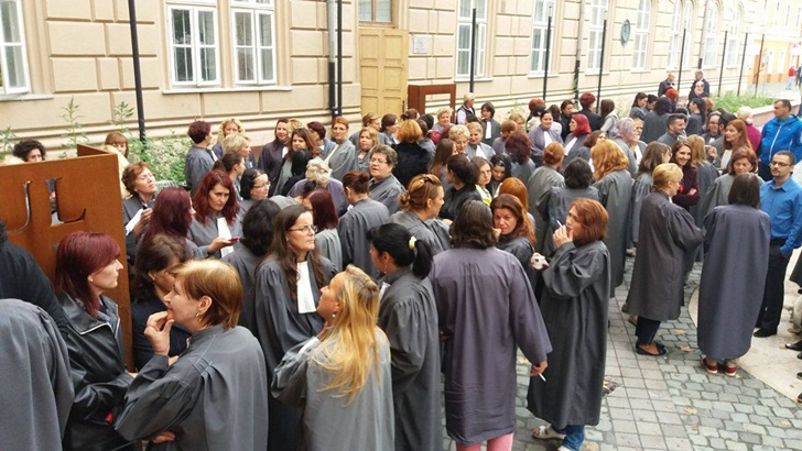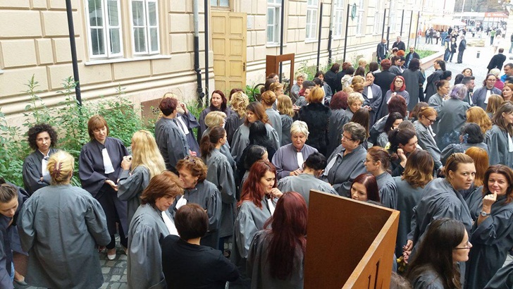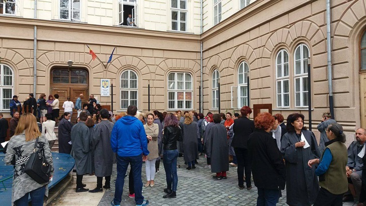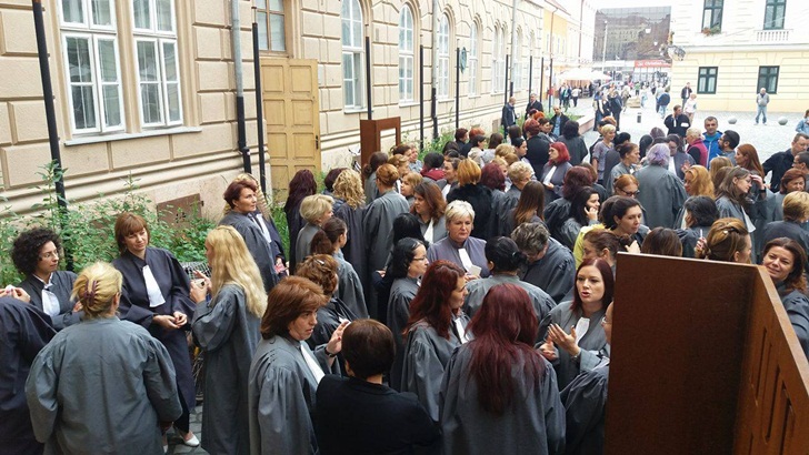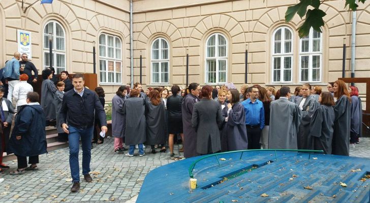 TIMISOARA. Sedinte de judecata au fost suspendate in aceasta dimineata la Timisoara, dupa ce, in jurul orei 10.00, grefierii de la Tribunalul Timis au intrerupt primii lucrul si au iesit in strada, in fata Palatului Dicasterial, care adaposteste instantele timisene.. Acestia au organizat un protest spontan, nemultumiti ca mai multe probleme pe care le-au semnalat in ultimii ani nu si-au gasit rezolvarea.