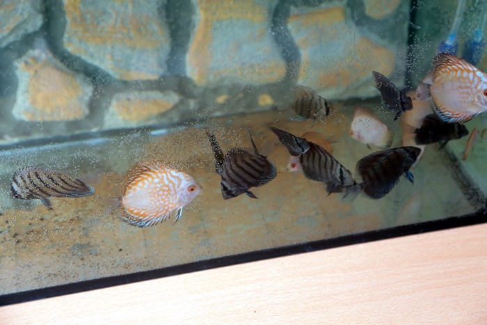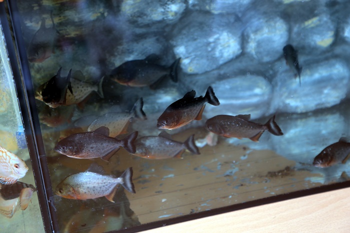 Pestii exotici, broastele testoase si chiar cativa serpi expusi in acvarii speciale sunt si ei in centrul atentiei.