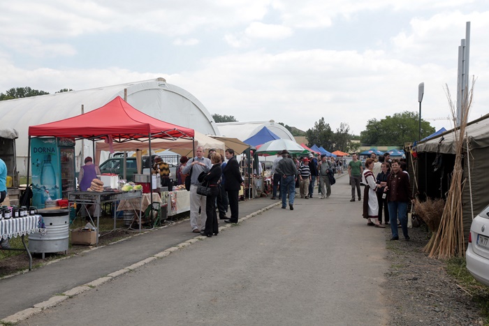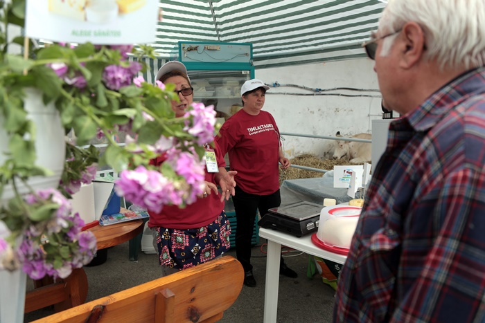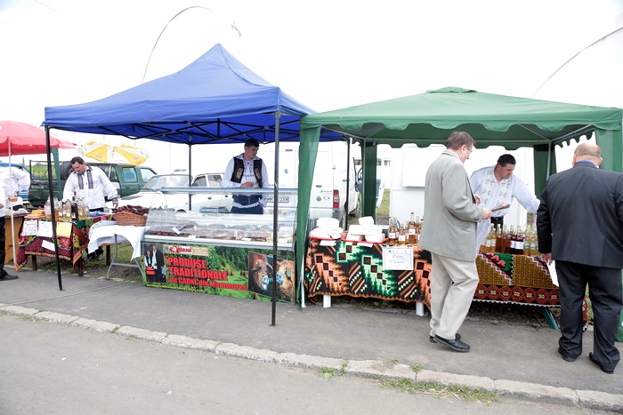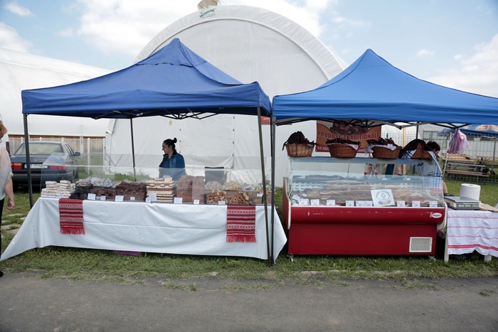 La multe dintre standuri vizitatorii pot degusta produse traditionale sau ecologice, de la cirese si capsuni, la miere, branza, sunca sau carnati.