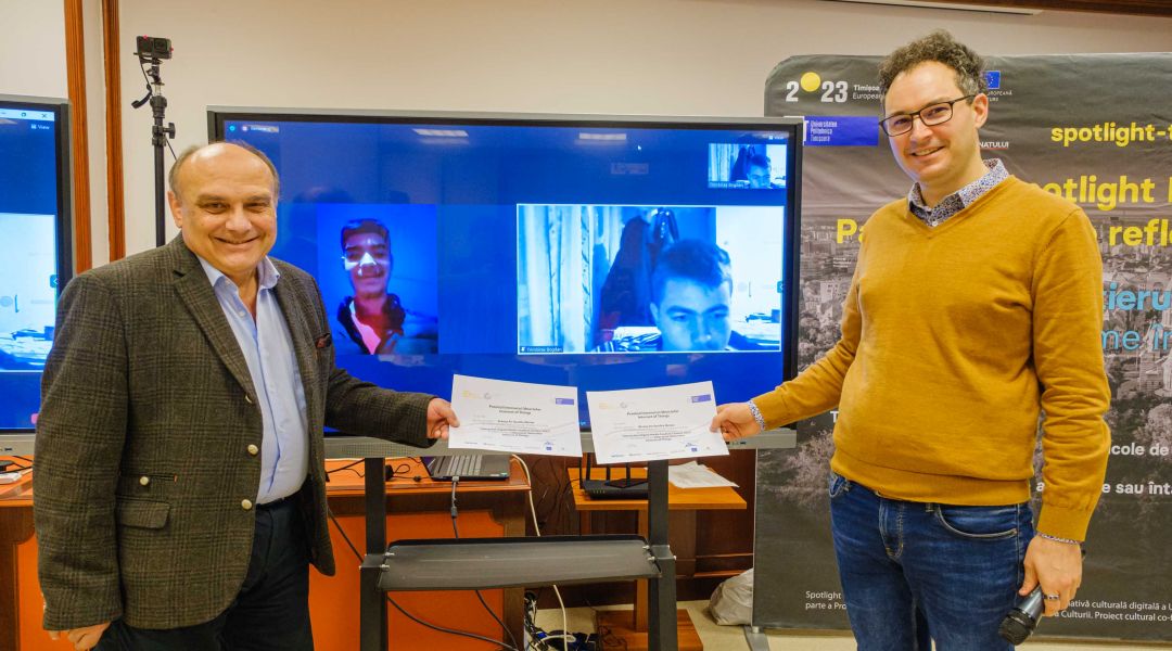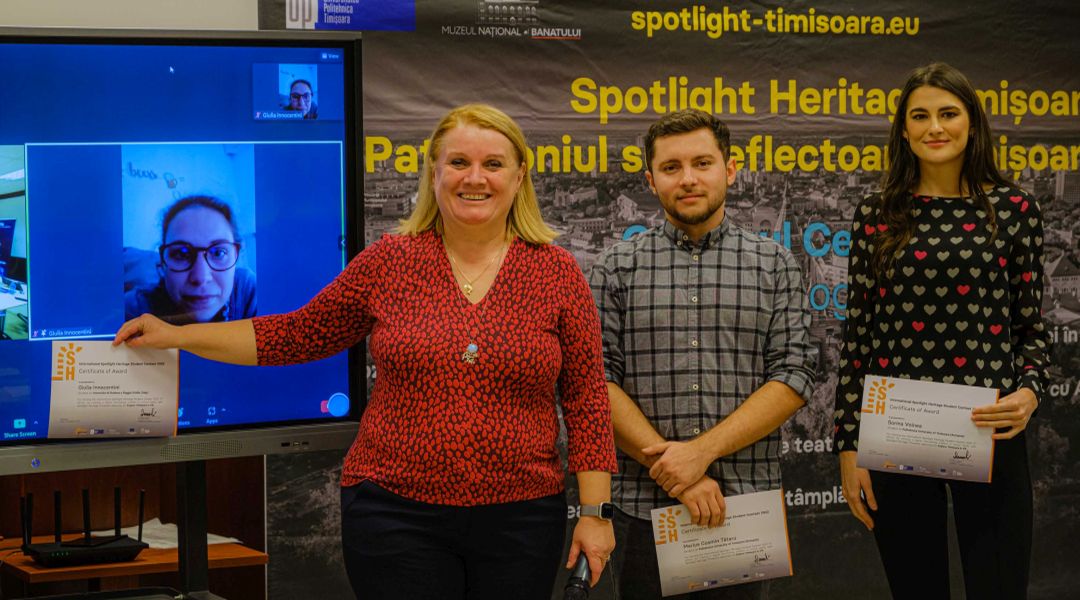 Dr.ing. Diana Andone, directorul CeL al UPT, a continuat cu o prezentare a proiectului Patrimoniul sub Reflectoare Timișoara/Spotlight Heritage Timișoara, care organizează secțiunea International Spotlight Heritage Student Contest (eXtended Reality).