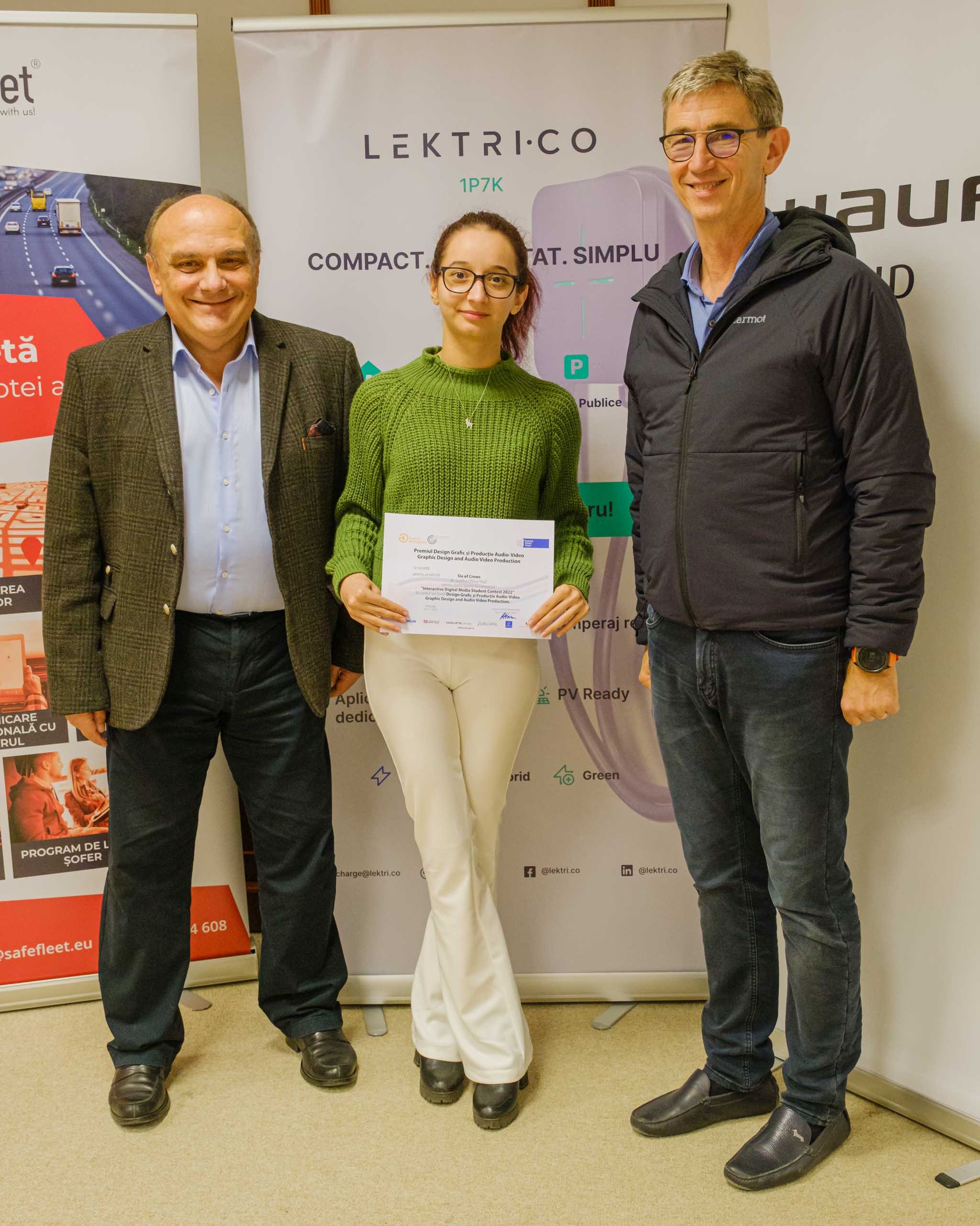 Premiul Design Grafic și Producție Audio-Video, oferit de către compania SafeFleet a fost înmânat studentei timișorence Sandra-Ofima Vlad (licență, Facultatea de Electronică, Telecomunicații și Tehnologii Informaționale, Universitatea Politehnica Timișoara) pentru videoclipul Six of Crows;