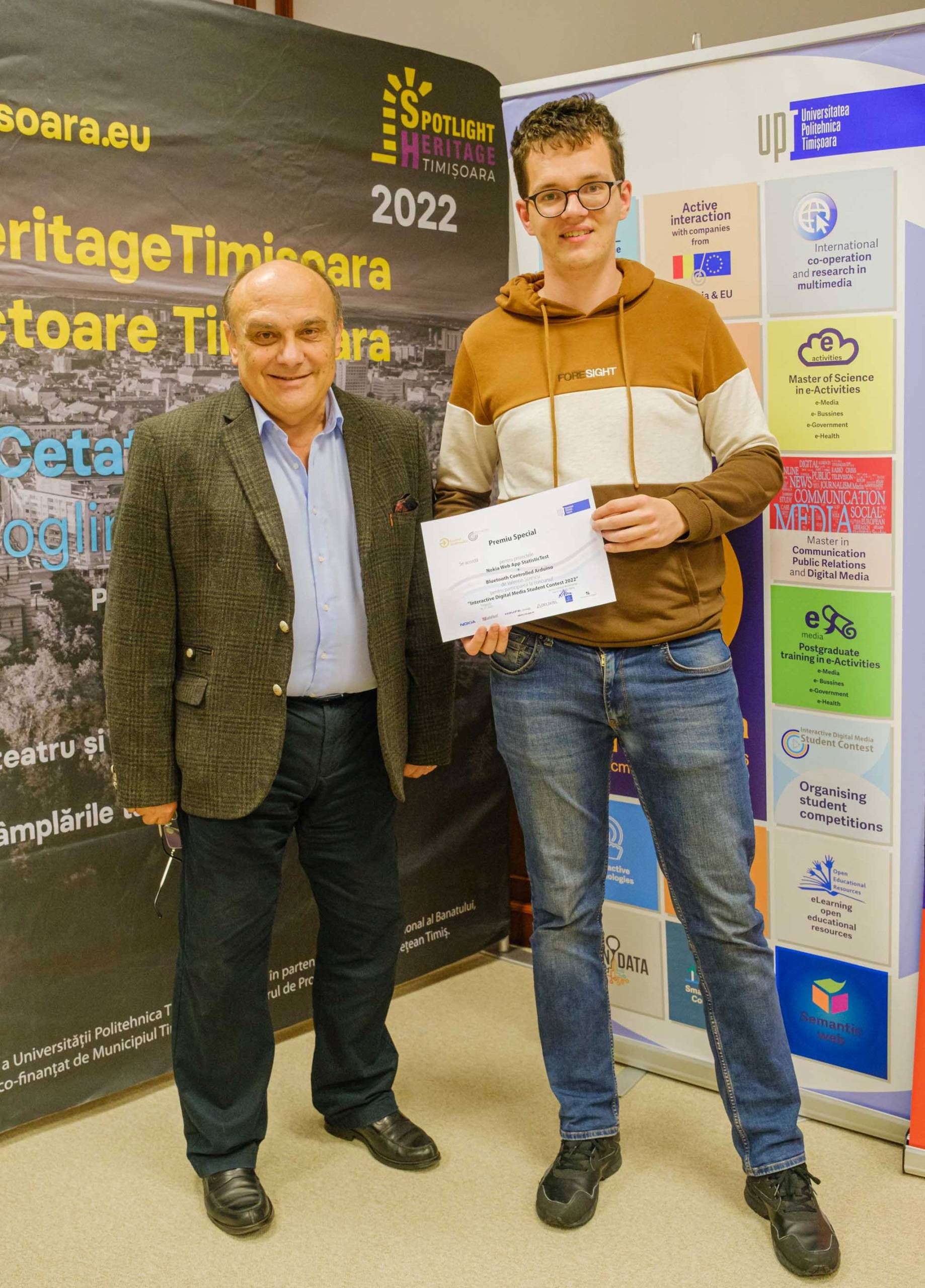 Premiul Special oferit de către Centrul Multimedia al UPT a mers către Valentin Sorescu (student licență, Facultatea de Electronică, Telecomunicații și Tehnologii Informaționale, Universitatea Politehnica Timișoara) pentru proiectele dezvoltate: Nokia WebApp StatisticTest – care își propune crearea și implementarea unei aplicații web care permite utilizatorului să acceseze informații despre situația testelor realizate la nivel intern și Bluetooth controlled Arduino RC Car – o mașină controlată prin Bluetooth, printr-o aplicație pentru smartphone.