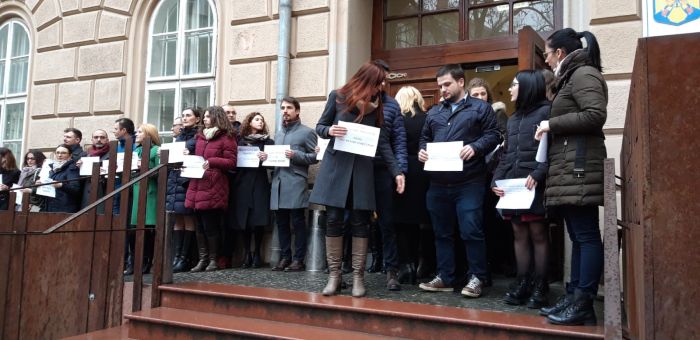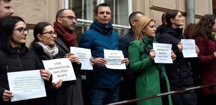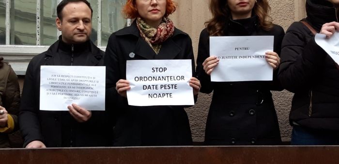 Acestia au iesit vineri in fata Palatului Dicasterial inarmati cu mesaje scrise pe coli de hartie: Stop ordonantelor date peste noapte!, Pentru o Justitie independenta! Parlamentul este unica autoritate legiuitoare a tarii! Stimati colegi, nu uitati: magistratii pot protesta! Independenta!