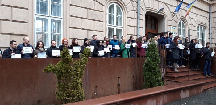 TIMISOARA. Procurorii Parchetului de pe langa Judecatoria Timisoara au iesit in strada in semn de protest fata de modificarile aduse legilor Justitiei.