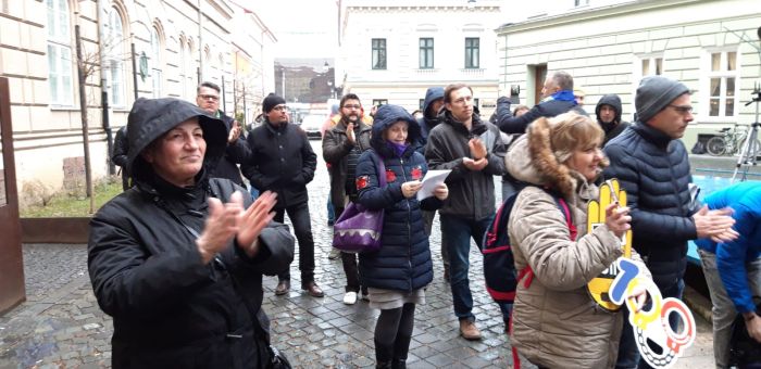 Cativa timisoreni au venit sa ii sustina cu aplauze furtunoase. Le-au transmis: Cinste lor, cinste magistratilor! Nu cedati!