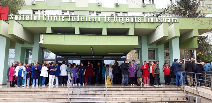 TIMISOARA. Protest spontan joi dimineata in fata Spitalului Judetean din Timisoara. Aproximativ 100 de angajati, de pe toate sectiile, au iesit in strada, la ora 10.00, nemultumiti ca managerul celei mai mari unitati medicale din vestul tarii a fost inlocuit prin ordin de ministru.