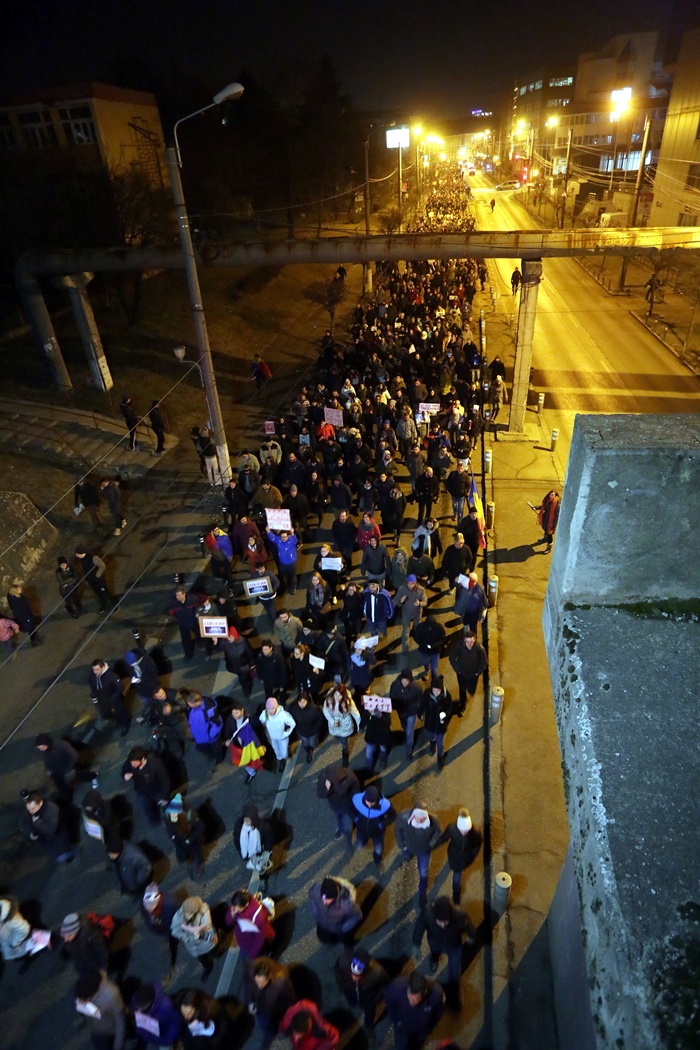 UPDATE: In jurul orei 22.20 protestatarii care au marsaluit prin cartierele din nordul Timisoarei, au revenit in Piata Operei acolo unde aproximativ 2.500 de oameni care nu au facut deplasarea, ii asteptau cu aplauze. Cat timp au fost plecati protestatarii, in fata Operei a cantat o fanfara. In acest moment, numarul celor care s-au adunat in centrul orasului ajunge la 30.000 de persoane.
