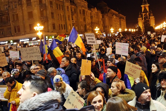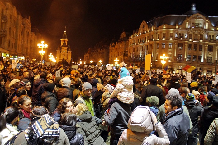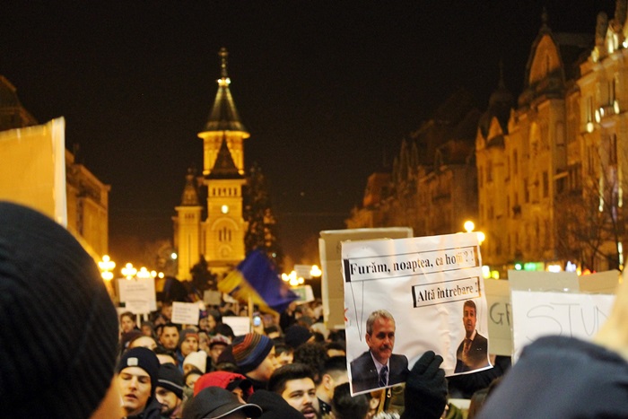 UPDATE: Timisorenii adunati in Piata Operei din Timisoara striga “Vanim la Bucuresti”, spunand ca sunt decisi sa mearga in Capitala pentru a se alatura protestului pana cand Guvernul va ceda si va abroga legile adoptate ale justitiei.