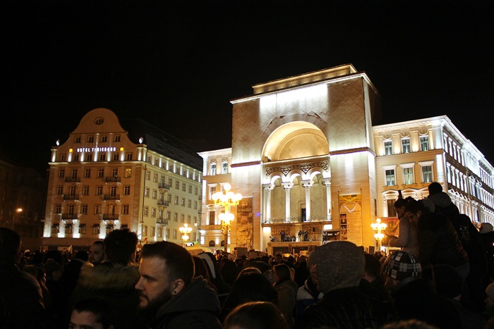 TIMISOARA. Inca o seara de proteste, la Timisoara, platoul din fata Operei aproape ca s-a umplut, putin dupa ora 18.00, dupa ce au sosit si studentii, in numar foarte mare, care au venit incolonati din Complexul Studentesc.