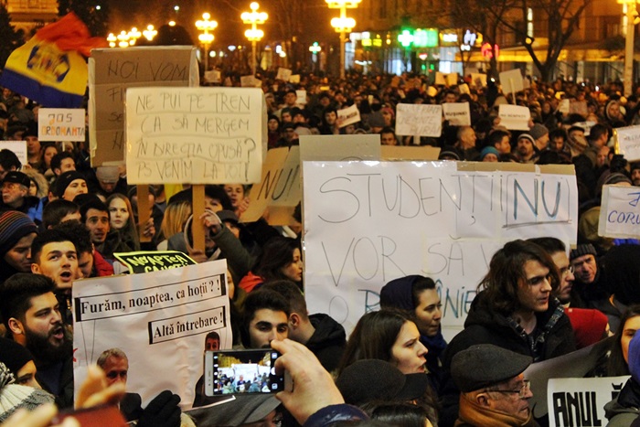 UPDATE: Organizatorii au anuntat ca in Piata Operei s-au adunat 15.000 de oameni, in jurul orei 19.20.”Adevar, dreptate, solidaritate“, “Abrogati si plecati“, “Rusine sa va fie“, “Vrem justitie nu coruptie“, “Studentii sunt cu noi“, “Informare nu manipulare“, sunt doar cateva dintre lozincile strigate de protestatari.