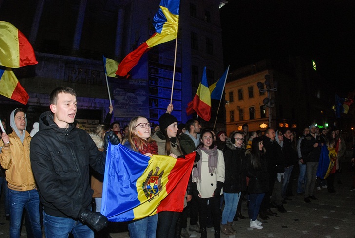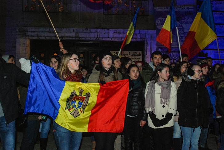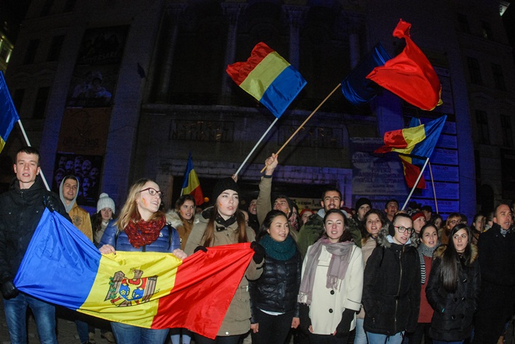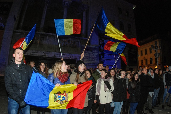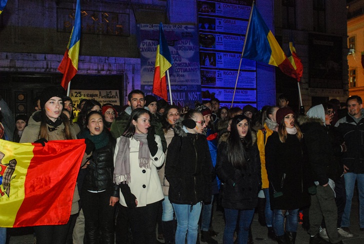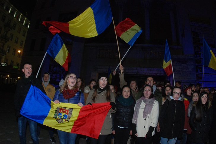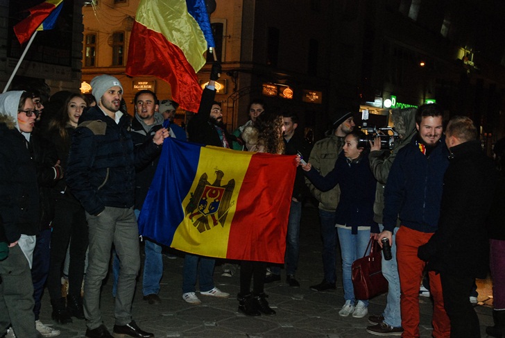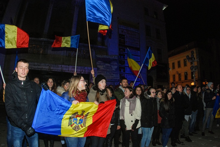 TIMISOARA. La fel ca si in alte orase din Romania, zeci de cetateni ai Republicii Moldova, in majoritate studenti care studiaza la Timisoara, au iesit in strada, luni seara, in Piata Victoriei.