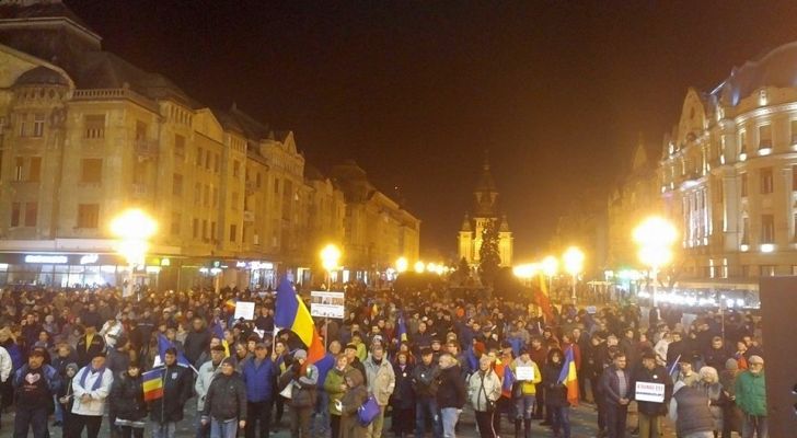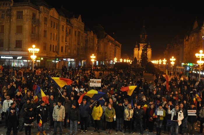 La Timisoara, duminica seara , in jurul orelor 19.30, in Piata Victoriei se aflau aproximativ 500 de timisoreni.
