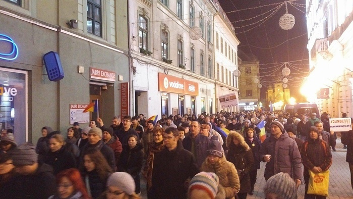 UPDATE: La orele 20.00, cei aproximativ 600 de protestatari au pornit intr-un mars prin centrul orasului.