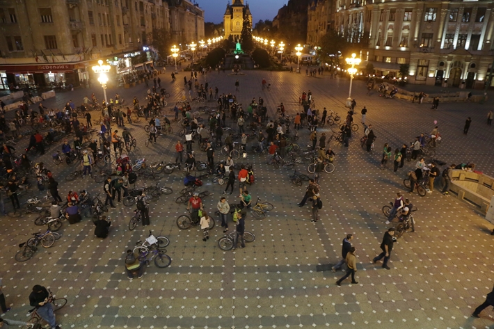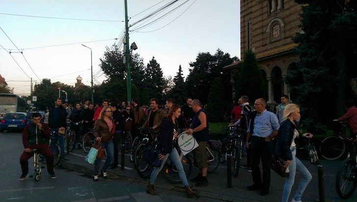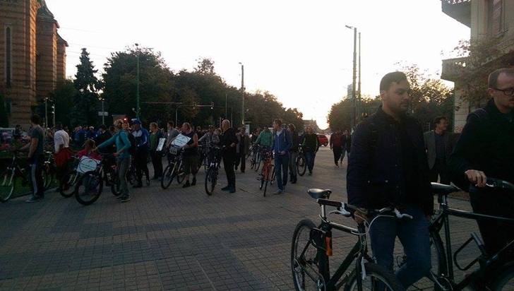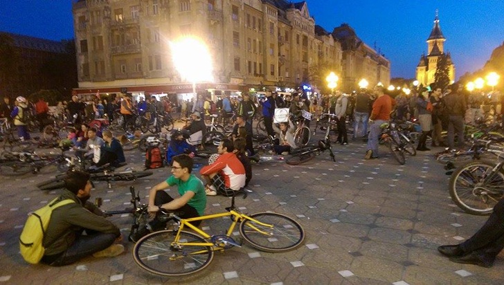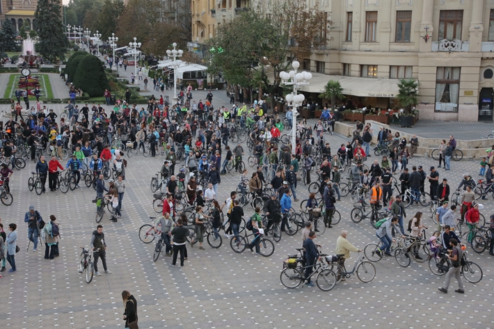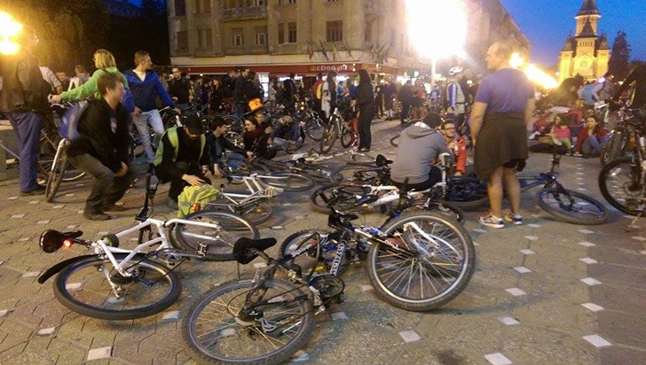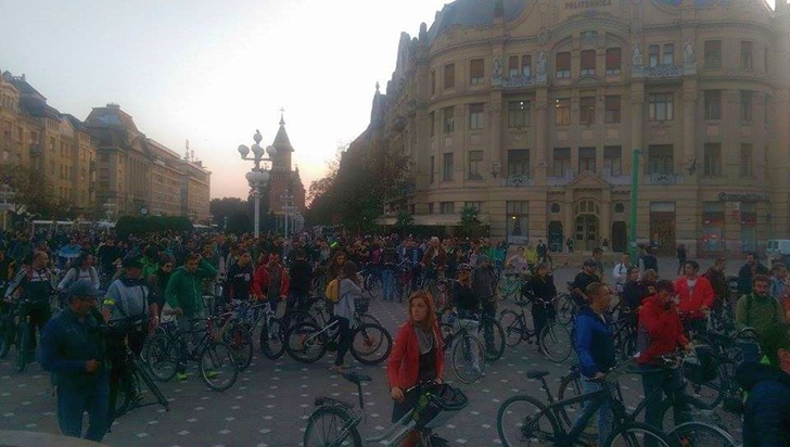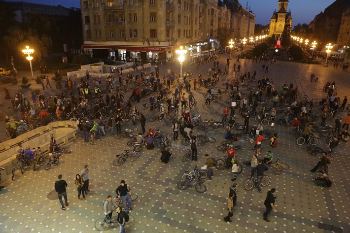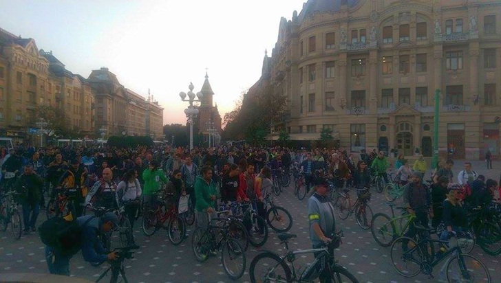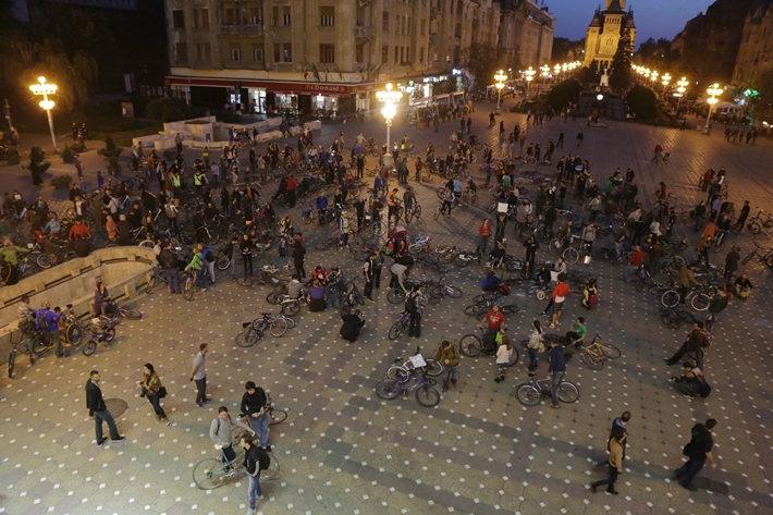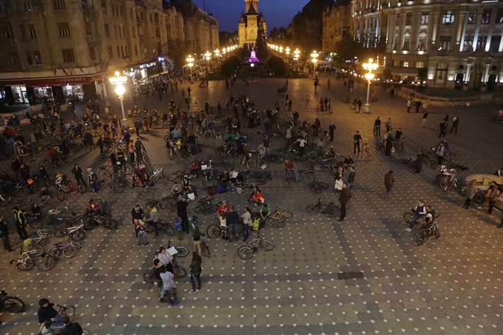 TIMISOARA. Sute de biciclisti de toate varstele s-au adunat la miscarea de protest organizata in centrul Timisoarei vineri seara.