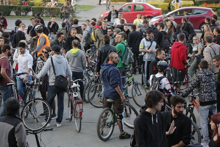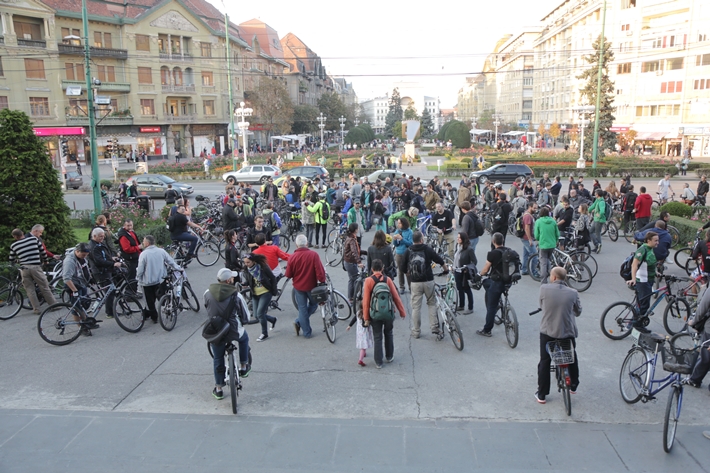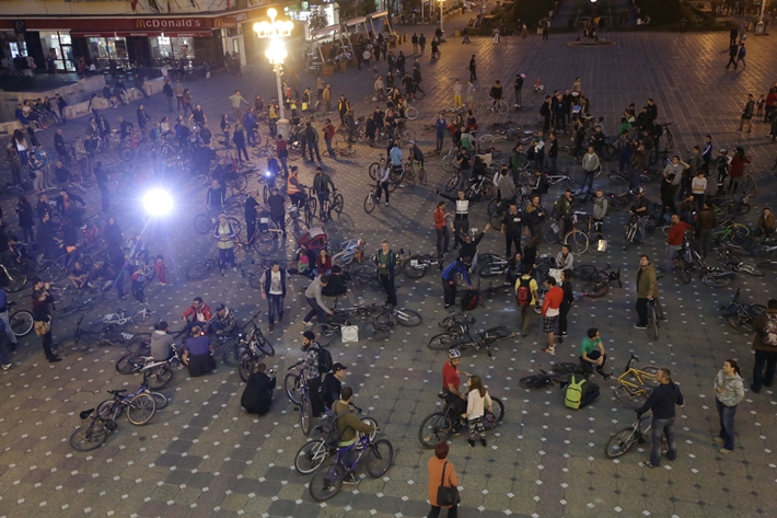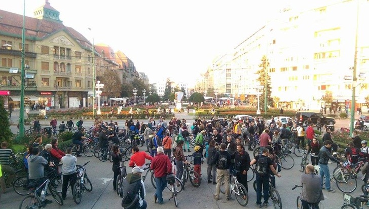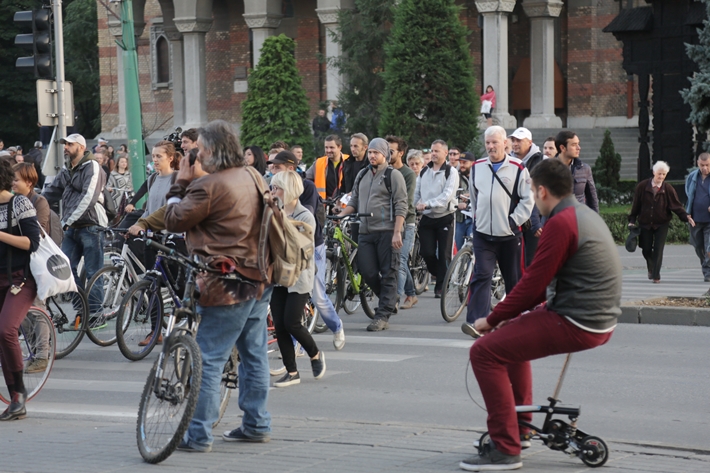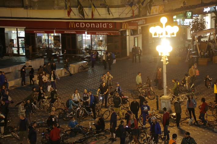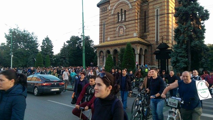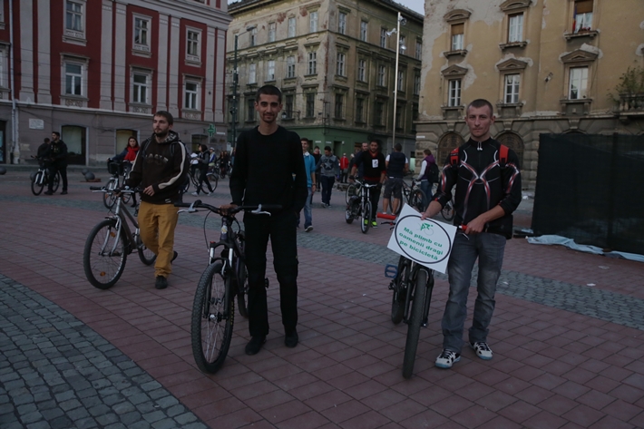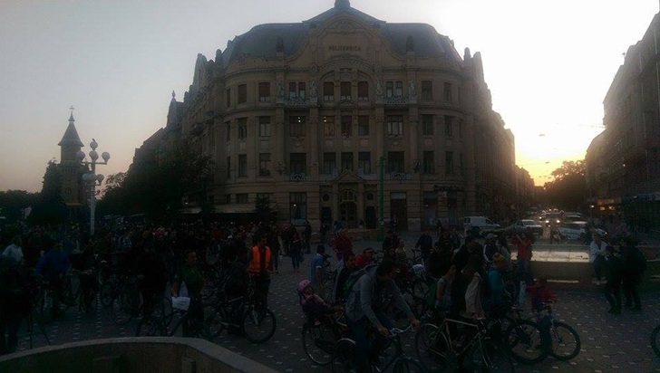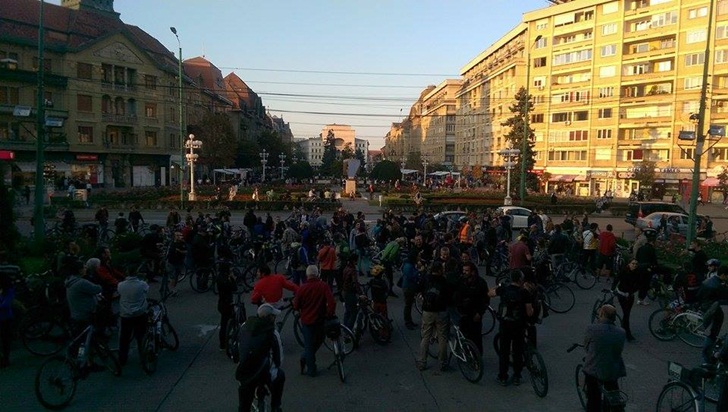 TIMISOARA. Sute de biciclisti de toate varstele s-au adunat la miscarea de protest organizata in centrul Timisoarei vineri seara.