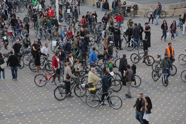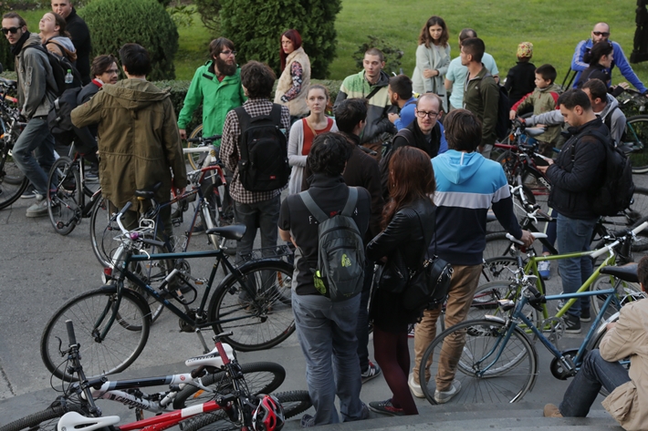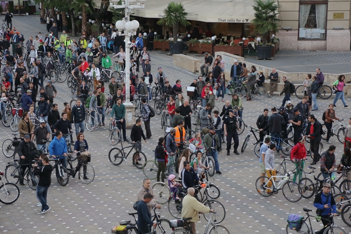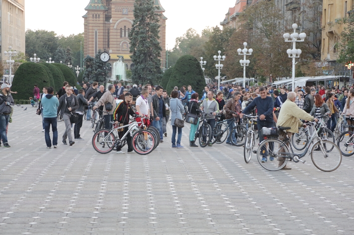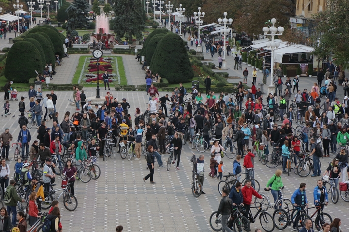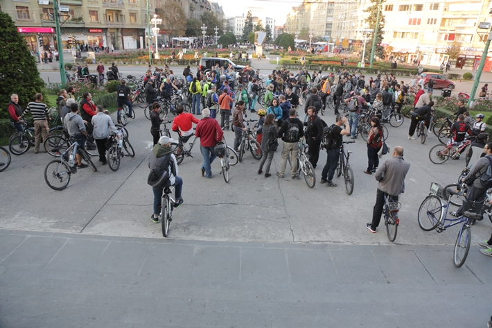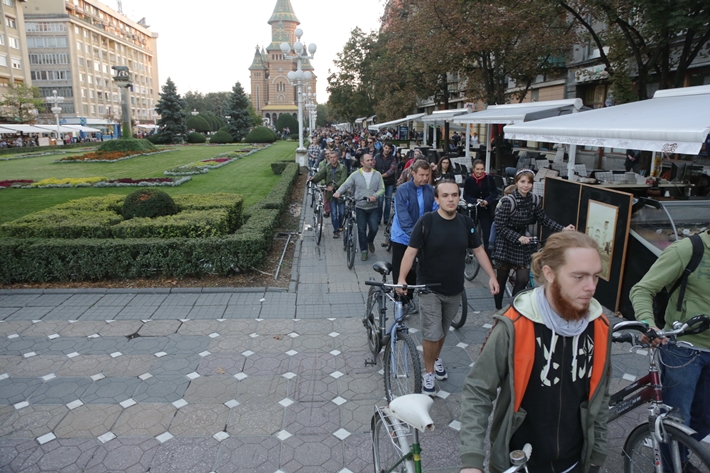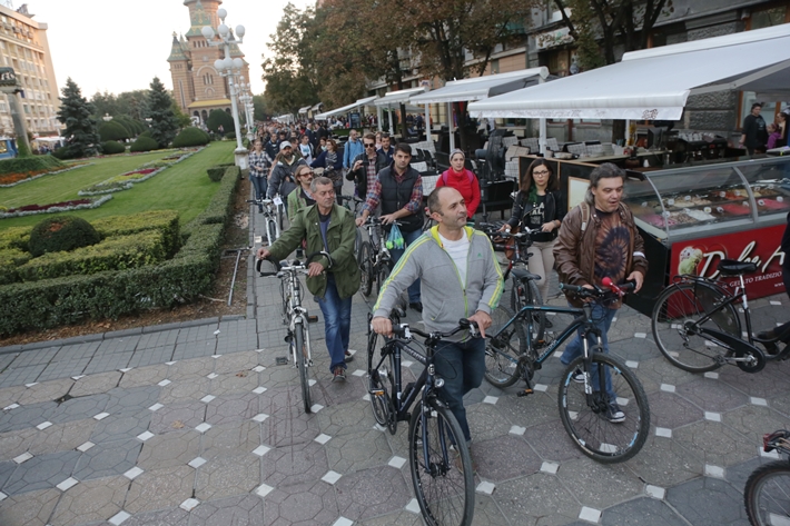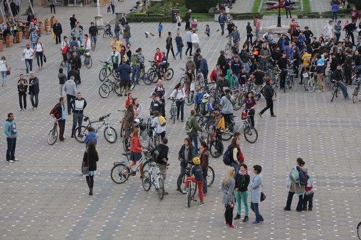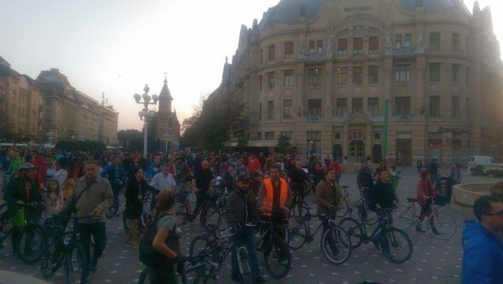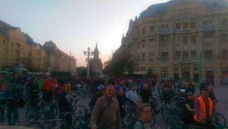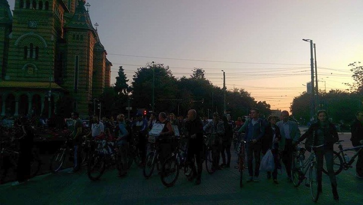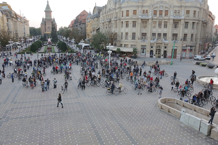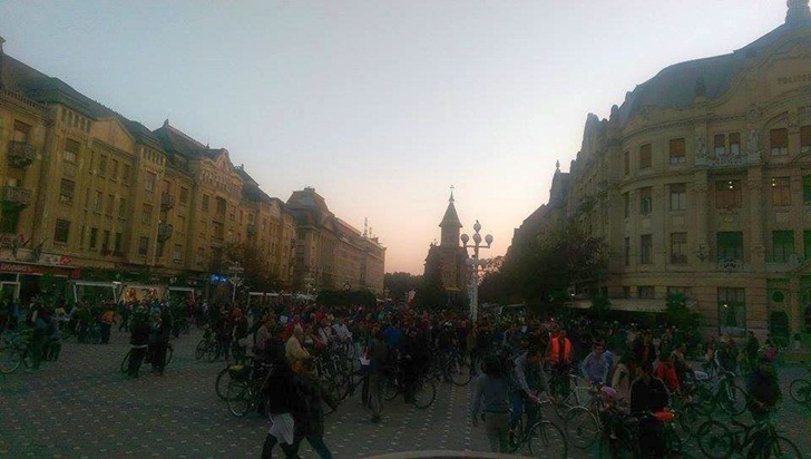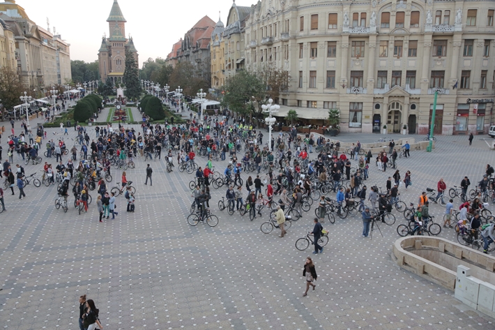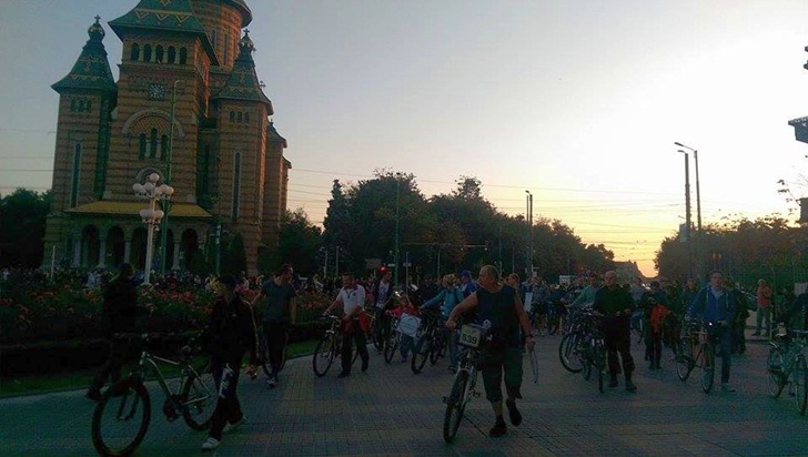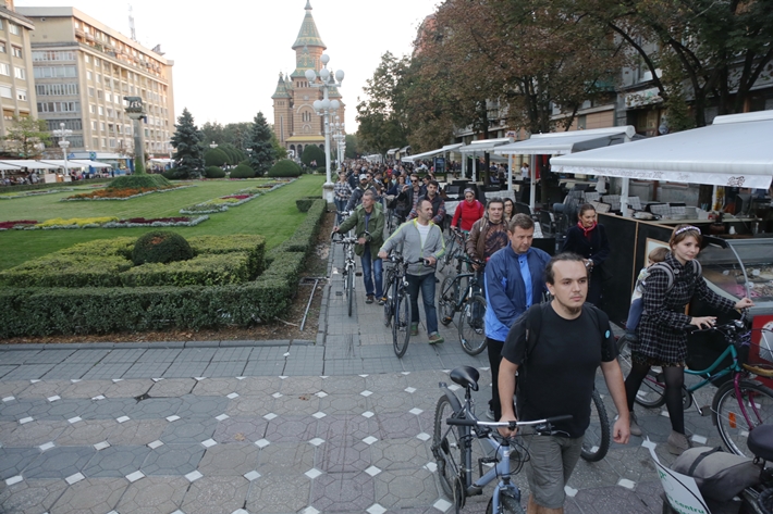 Locul de adunare a fost platoul din fata Catedralei Mitropolitane, un loc simbol pentru Timisoara, unde inainte de ora 18.00 au inceput sa vina tineri, copii, parinti si bunici cu bicicletele.