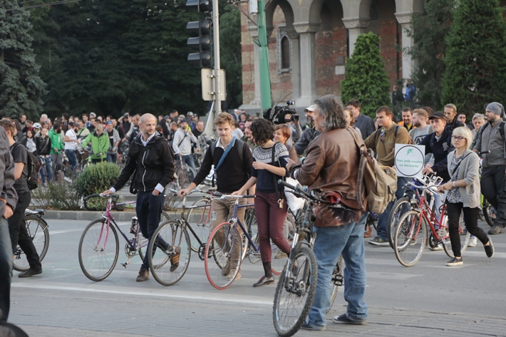 Acestia au venit sa-si arate nemultumirea fata de masura luata de primarie prin care biciclistii sunt alungati din Piata Victoriei, de pe pietonala Marasesti si, in viitor, de pe strazile din centrul istoric al orasului, acum in santier pentru reabilitare.
