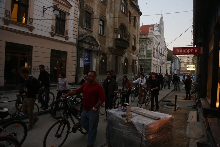 Dupa ce au ajuns la capatul pietonalei Marasesti, biciclistii s-au intors si si-au continuat drumul pe strada Gheorghe Lazar, trecand prin fata sediului PNL Timis. Protestatarii si-au continuat plimbarea pe langa biciclete spre Piata Libertatii.