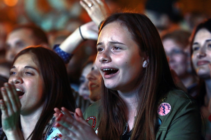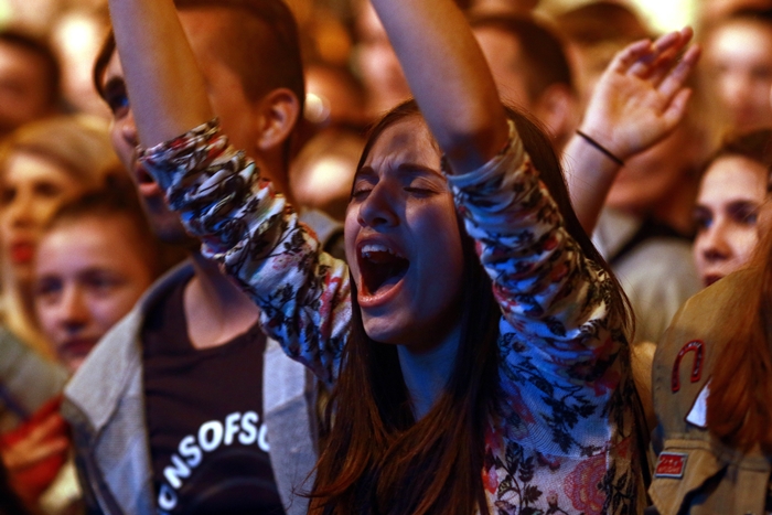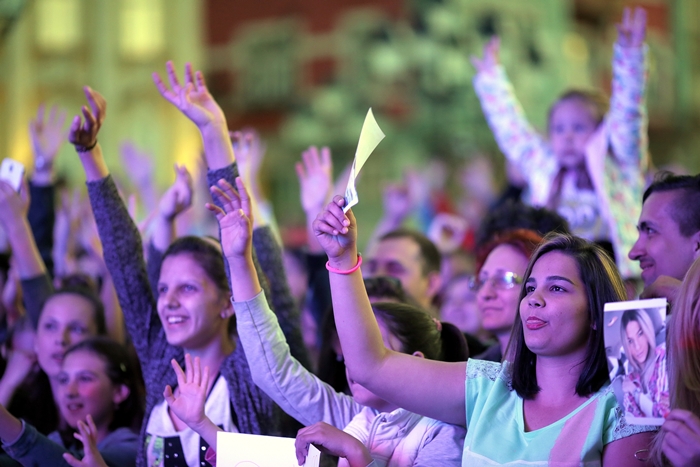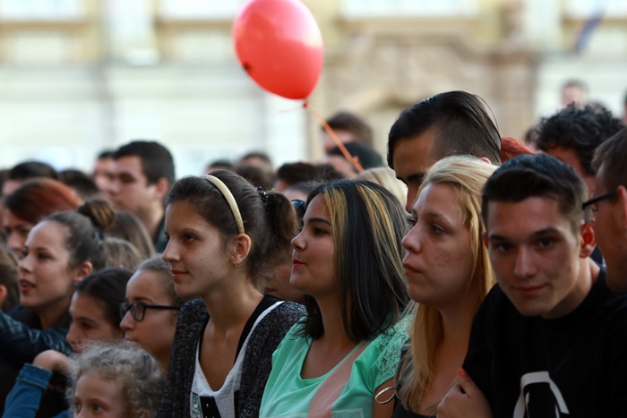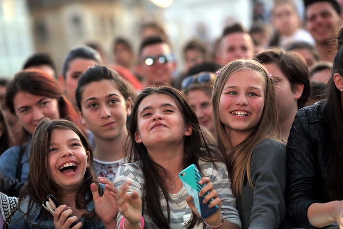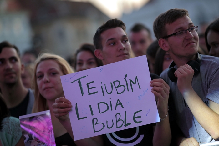 TIMISOARA. Plin de tineri au cantat, au dansat si i-au aplaudat pe indragitii Lidia Buble si Smiley, la concertul sustinut de acestia in Piata Unirii din Timisoara.