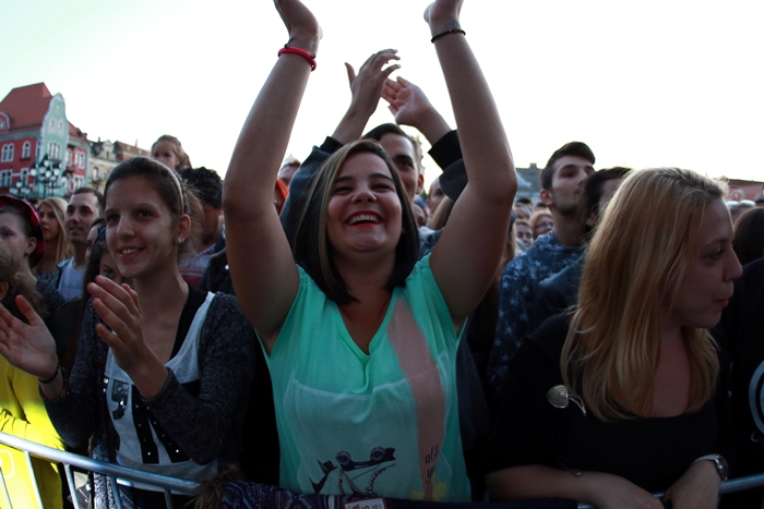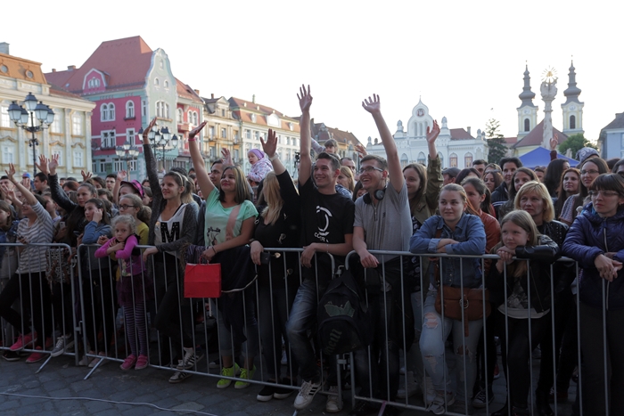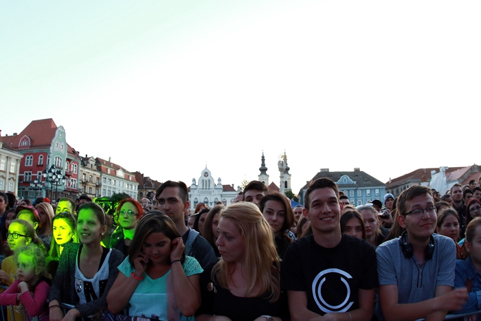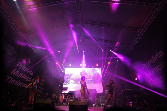 Prima care a urcat pe scena si a incins atmosfera din centrul Timisoarei a fost Alexandra Mitroi&Band. Apoi Lidia Buble i-a incantat pe fani cu cele mia noi hituri ale sale.