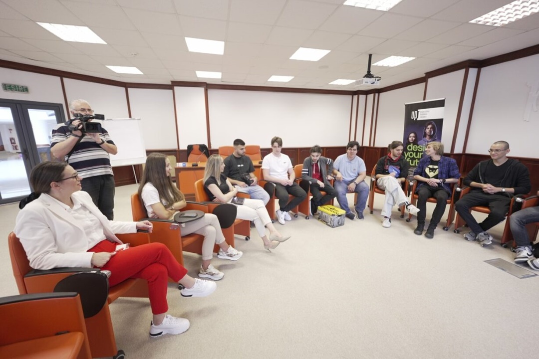Alexandru Luca, coordonatorul Depatramentului de Marketing Universitar, le-a vorbit elevilor despre oportunitățile pe care le vor avea ca viitori studenți ai Politehnicii timișorene, iar Paul Stiegelbauer, reprezentantul studenților în Consiliul de Administrație al UPT a pus accentul pe implicarea civică de care dau dovadă studenții Universității Politehnica Timișoara.