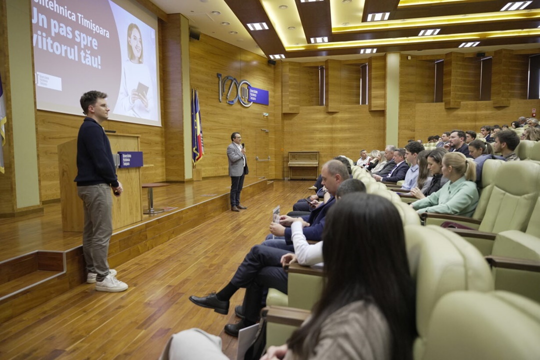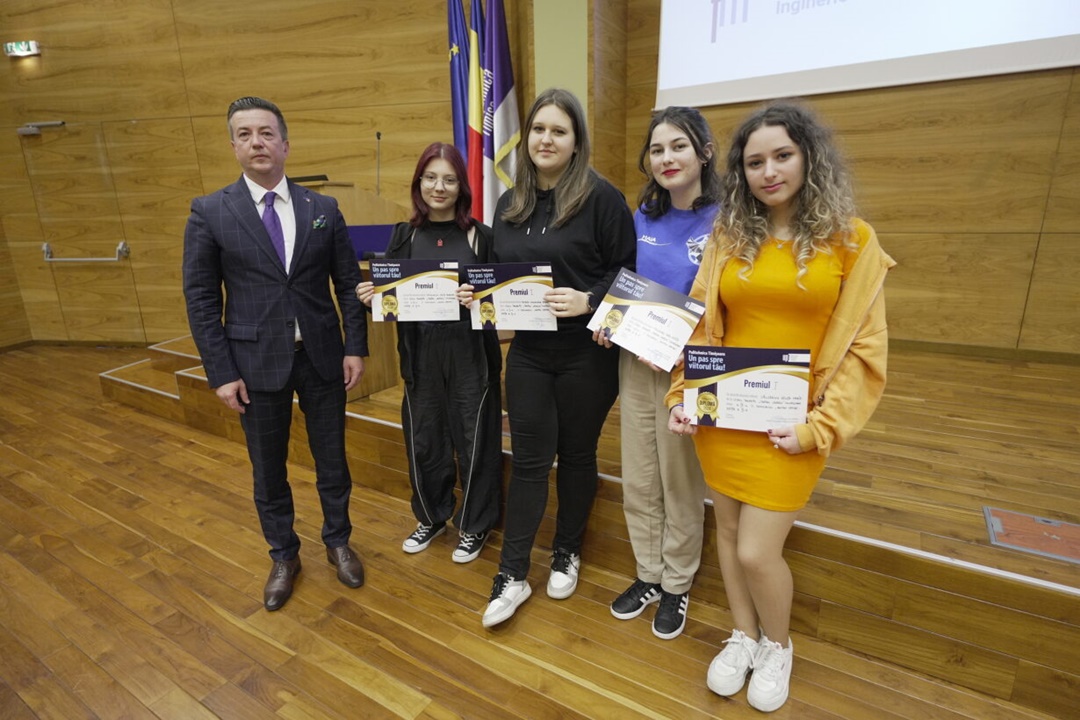 În debutul evenimentului, rectorul Universității Politehnica Timișoara, conf.univ.dr.ing. Florin Drăgan, le-a vorbit elevilor despre cel mai important brand al Timișoarei, Politehnica, i-a felicitat pentru munca depusă, pentru rezultatele obținute și i-a invitat să devină studenți ai facultăților UPT.