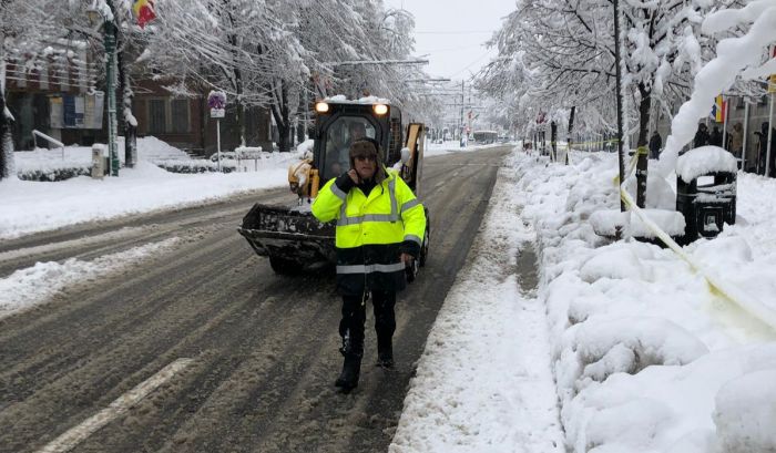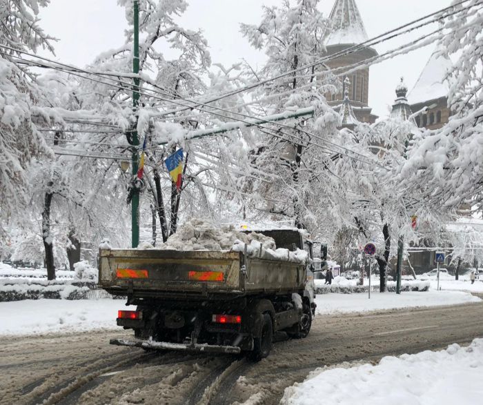 TIMISOARA. Mobilizare la deszapezire in Timisoara. Nu mai putin de 250 de oameni cu toate utilajele de la SDM, Horticultura, Colterm si Aquatim sunt in teren. Acestora li se alatura detinuti de la Penitenciarul Timisoara.