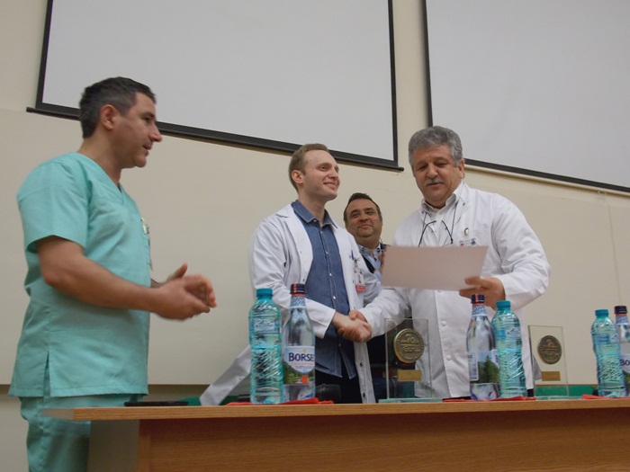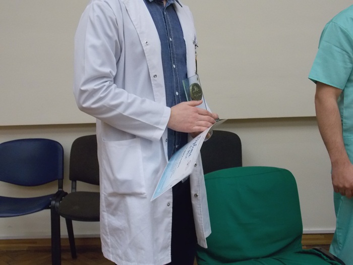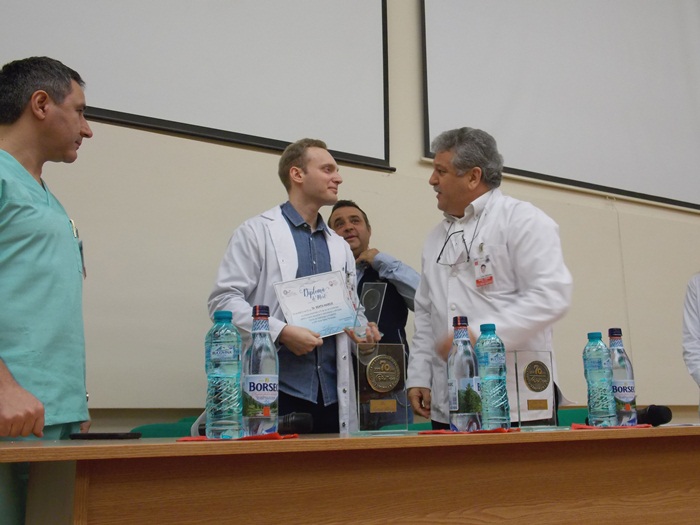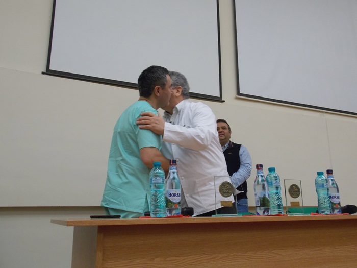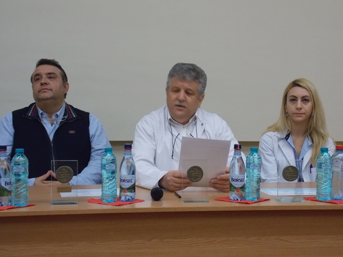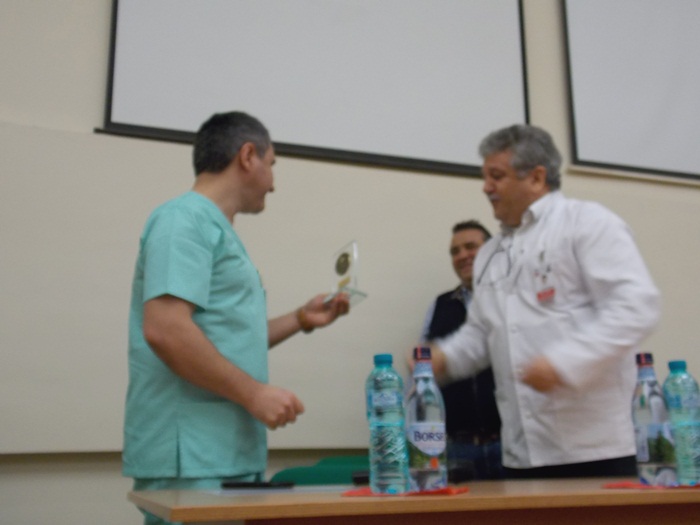 Trei dintre medicii rezidenti din cadrul sectiei, Antonia Moldovan, Marius Benta si Adrian Tutelca, au fost premiati cu cate o diploma si au primit cate o placheta aniversara.