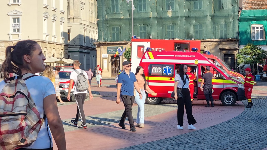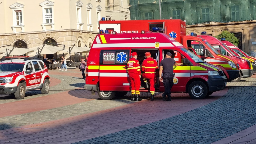 Ambulante rosii insotie de echipaje au fost amplasate si in Piata Libertatii.
