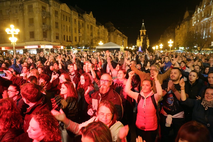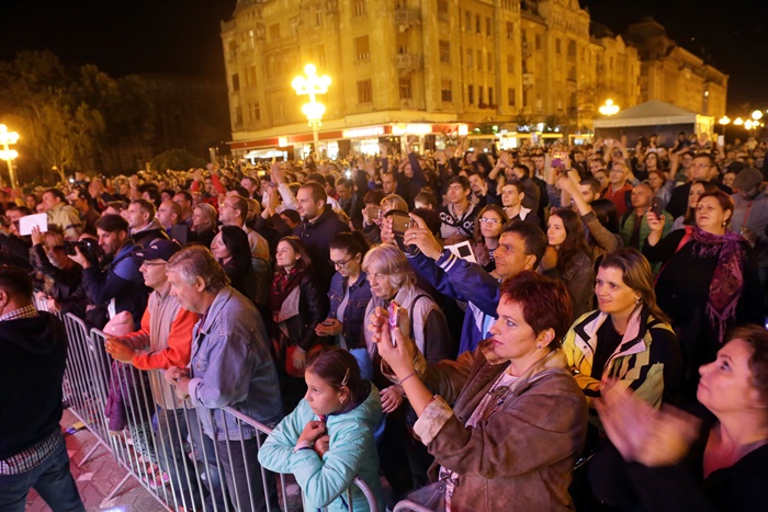Traditionalul “Buna seara, prieteni!” a deschis concertul, iar Cristi Minculescu, Iris si Felicia Filip au i-au incantat pe timisorenii veniti cu mic cu mare in centrul orasului.