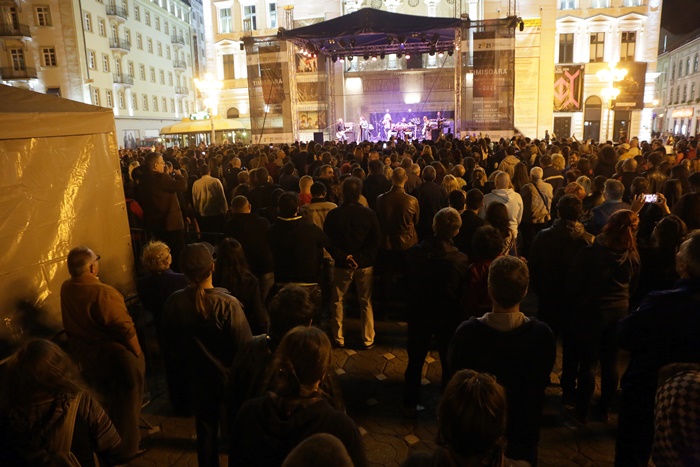 TIMISOARA. Piata Victoriei a rasunat pe acorduri de muzica rock, vineri seara. Peste o mie de oameni au cantat intr-un glas cu Iris, Cristi Minculescu si Felicia Filip cele mai cunoscute piese din repertoriul legendarei formatii.