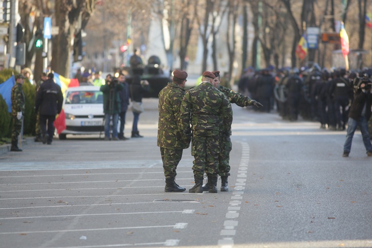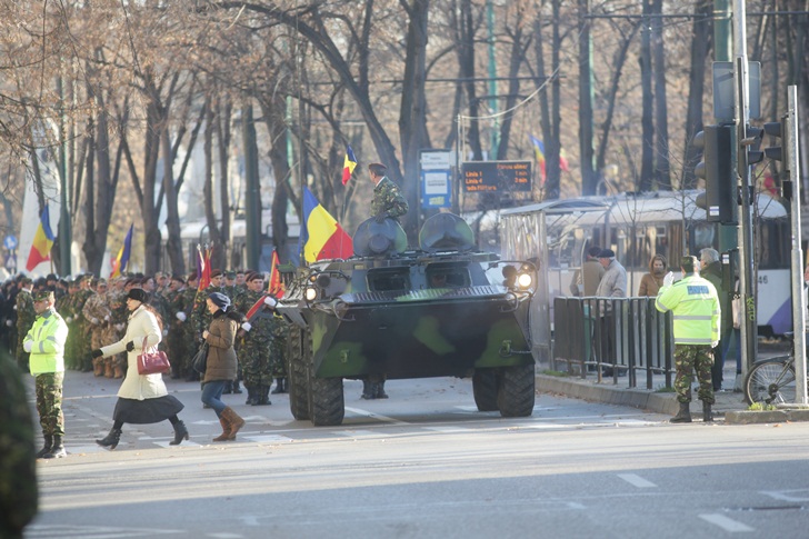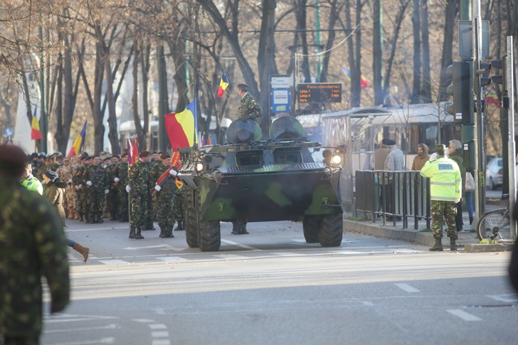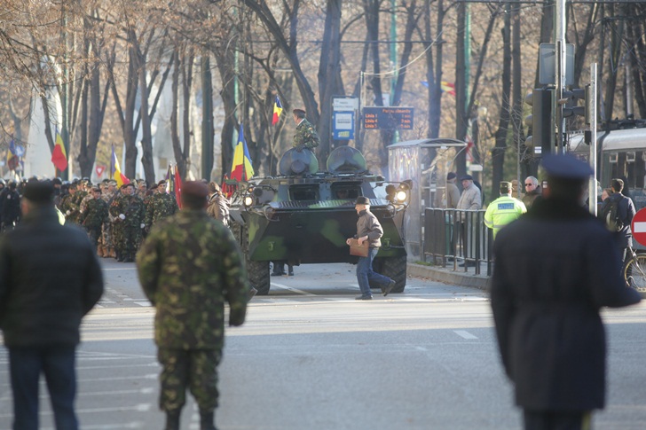 TIMISOARA. Trafic blocat in centrul Timisoarei marti dimineata! Bulevardul Revolutiei, de la Prefectura si pana la Banca Nationala, a fost inchis circulatiei rutiere pentru a lasa loc militarilor sa se antreneze pentru parada de Ziua Nationala.
