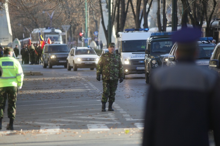 De asemenea, Politia Rutiera a restrictionat traficul pe mai multe strazi din zona. Agentii reamintesc soferilor ca joi, in 1 Decembrie, intre orele 9.00 si 13.00, nu se va putea patrunde pe strazile Mocioni, Melentie Draghici (Industria Lanii), Dimitrie Gusti, Hector, Filipescu si bulevardul Revolutiei, si va fi oprita si circulatia tramvaielor intre 11.30 si 12.30.