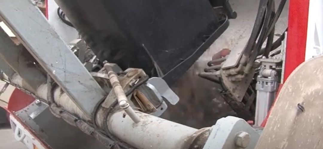 Dupa ce recipientul este golit acesta este mentinut de bratul de ridicare. In interiorul pubelei este introdusa o pompa care da drumul la apa cu presiune, iar depunerile sunt eliminate.