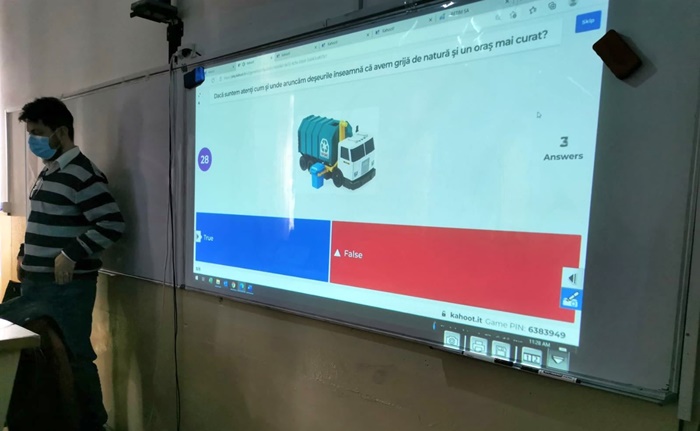 Peste 150 de elevi din ciclul primar si gimnazial au participat la orele in care profesori au fost angajatii RETIM si ADID. Cu ajutorul unor proiectii video acestia le-au aratat celor mici unde trebuie aruncat resturile pentru a proteja mediul.