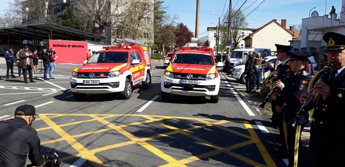 La inaugurarea noului sediu a avut loc si o parada militara, in care au defilat cadre ale Inspectoratului pentru Situatii de Urgenta Timis, dar si motociclete si autospeciale cu care se actioneaza la interventii.
