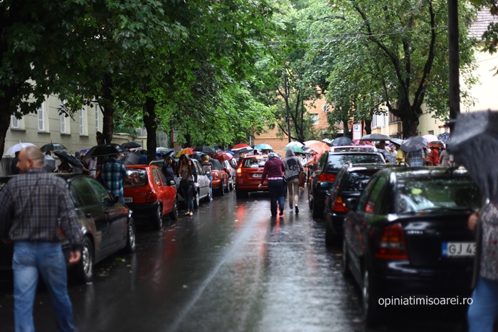 TIMISOARA. Inghesuiala mare, in pofida ploii, la Universitatea de Medicina si Farmacie Victor Babes din Timisoara. Sute de parinti i-au asteptat cu sufletul la gura pe candidatii care au sustinut examenul de admitere.